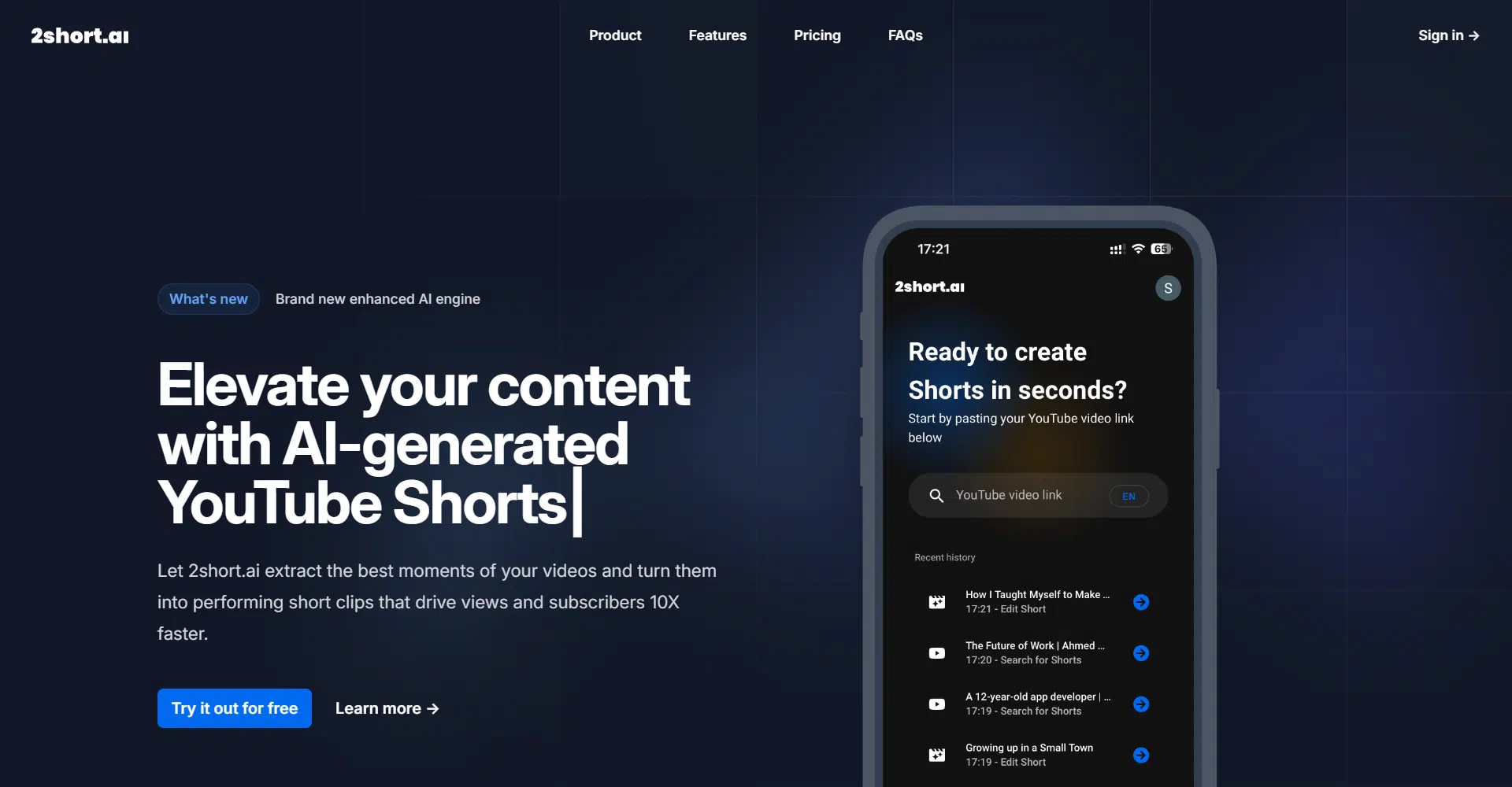 Transform your YouTube game with 2short.ai, the game-changer in AI-generated YouTube shorts! Elevate your content effortlessly, driving views and subscribers at lightning speed. With 2short.ai, repurposing your videos has never been this exciting.