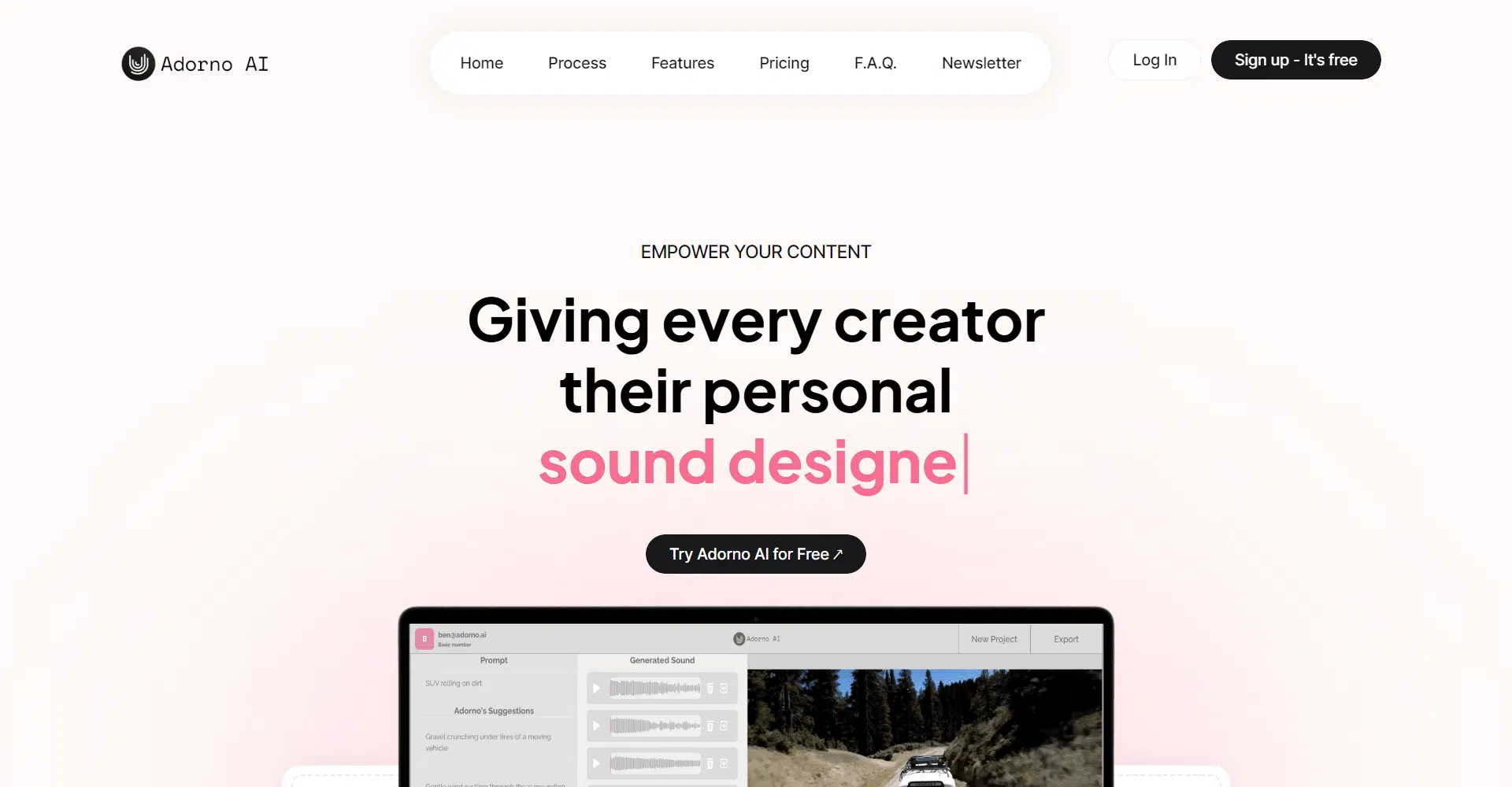 Imagine having a dedicated team of experts at your fingertips; a sound designer, a video editor, and a post-production wizard, all committed to making your content stand out in a crowded digital landscape. With Adorno AI, every creator is empowered to transform their videos into immersive experiences that captivate and enthrall audiences.