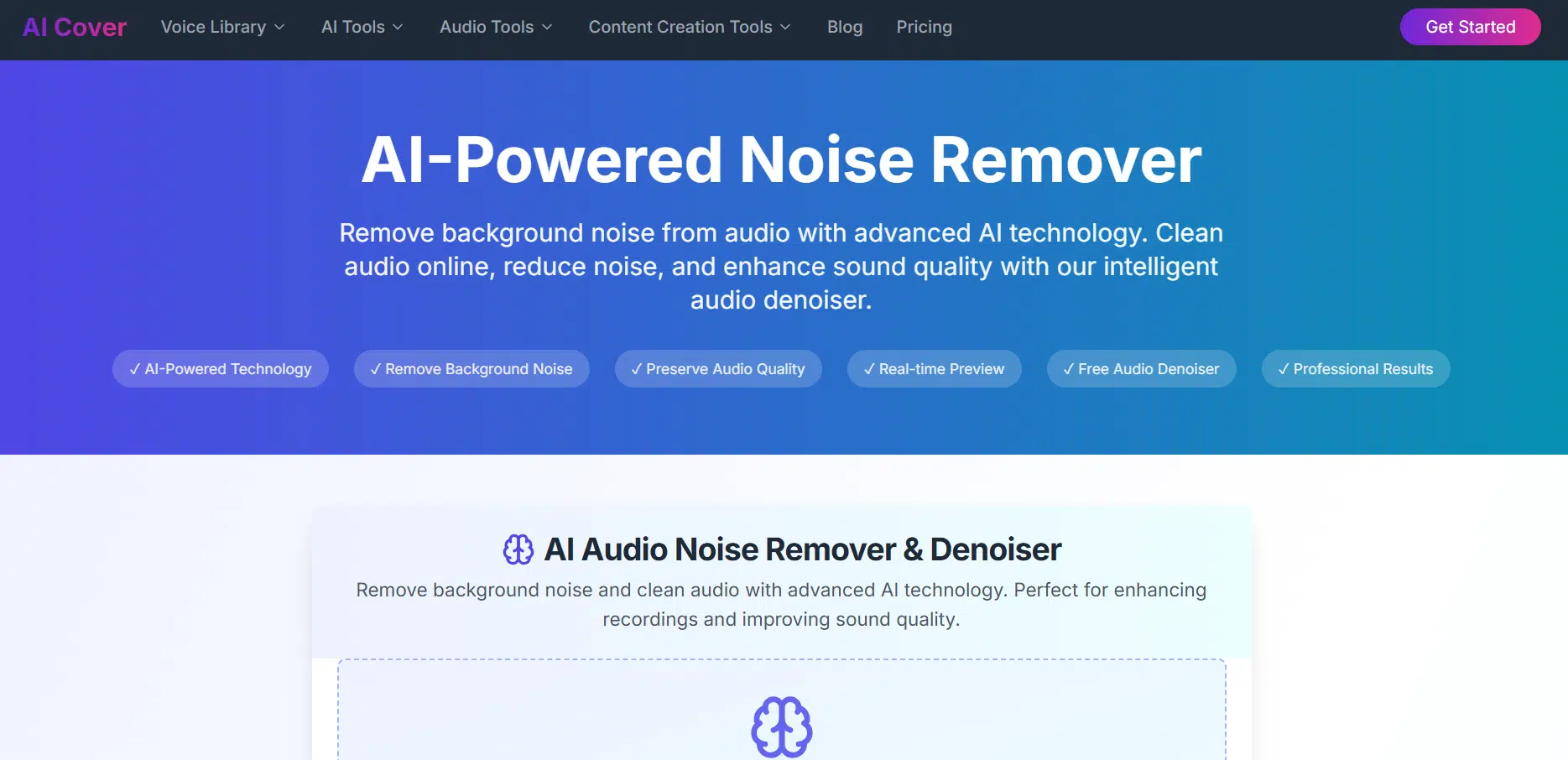 AI Cover Noise Remover is an AI-powered audio denoising tool designed to remove background noise and enhance sound clarity in recordings. They use advanced machine learning algorithms to detect and eliminate unwanted noise such as fan sounds, traffic, wind, and microphone hiss, while preserving the natural quality of speech and music. With a simple interface, users can clean audio files quickly and achieve professional-quality results without technical expertise.