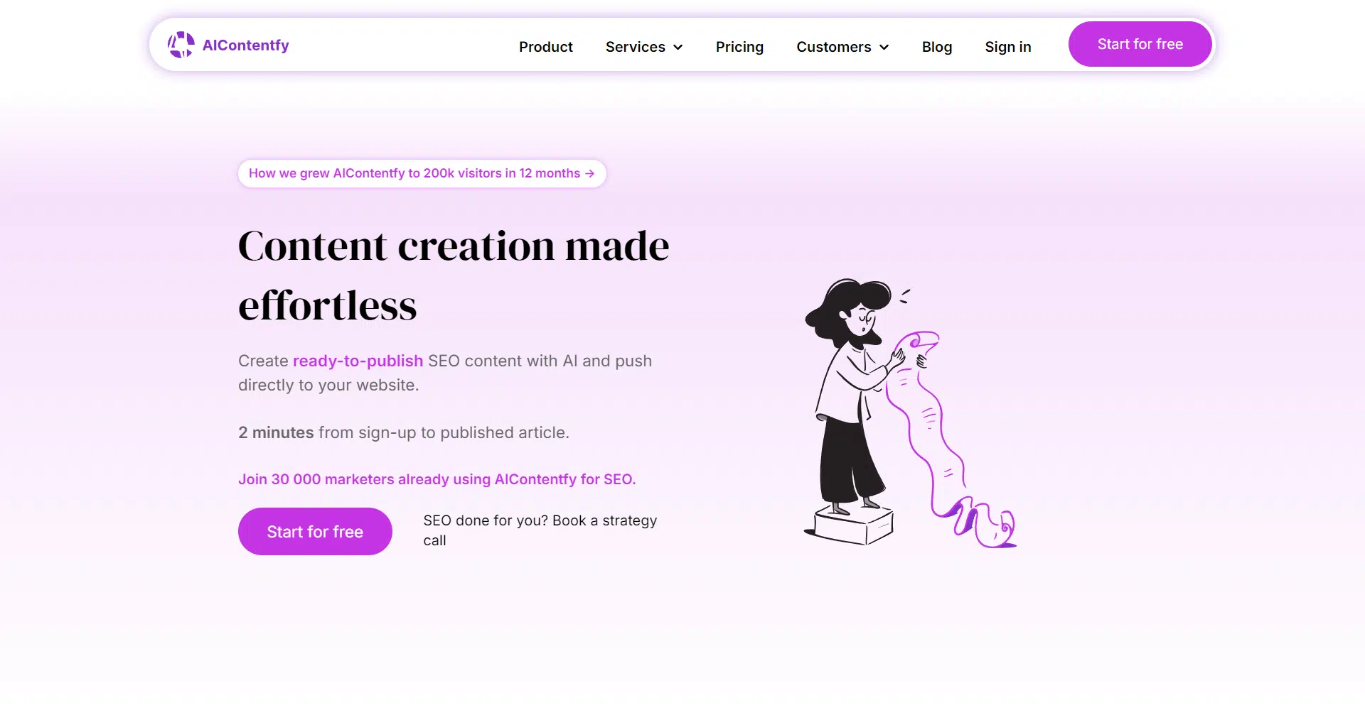 AIContentfy is transforming content creation with a streamlined, all-in-one SEO platform that makes publishing ready-to-go articles effortless. In just two minutes from sign-up, you can go from a blank page to a published article, thanks to AIContentfy’s cutting-edge technology. Trusted by over 30,000 marketers, this platform offers a game-changing solution for scaling SEO content without compromising on quality.