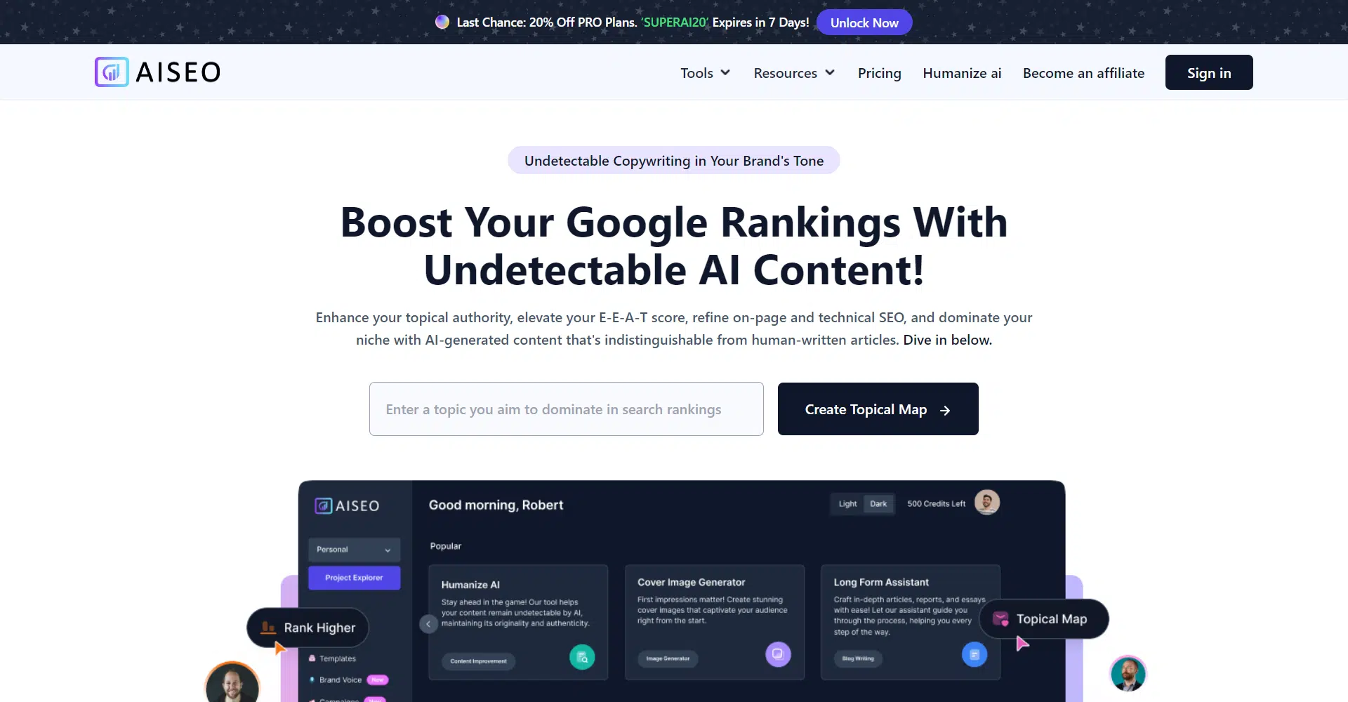 Step into the future of content creation with AISEO, your key to undetectable AI copywriting that mirrors your brand’s tone seamlessly. Elevate your Google rankings and dominate your niche effortlessly as AISEO refines on-page and technical SEO, boosting your E-E-A-T score.