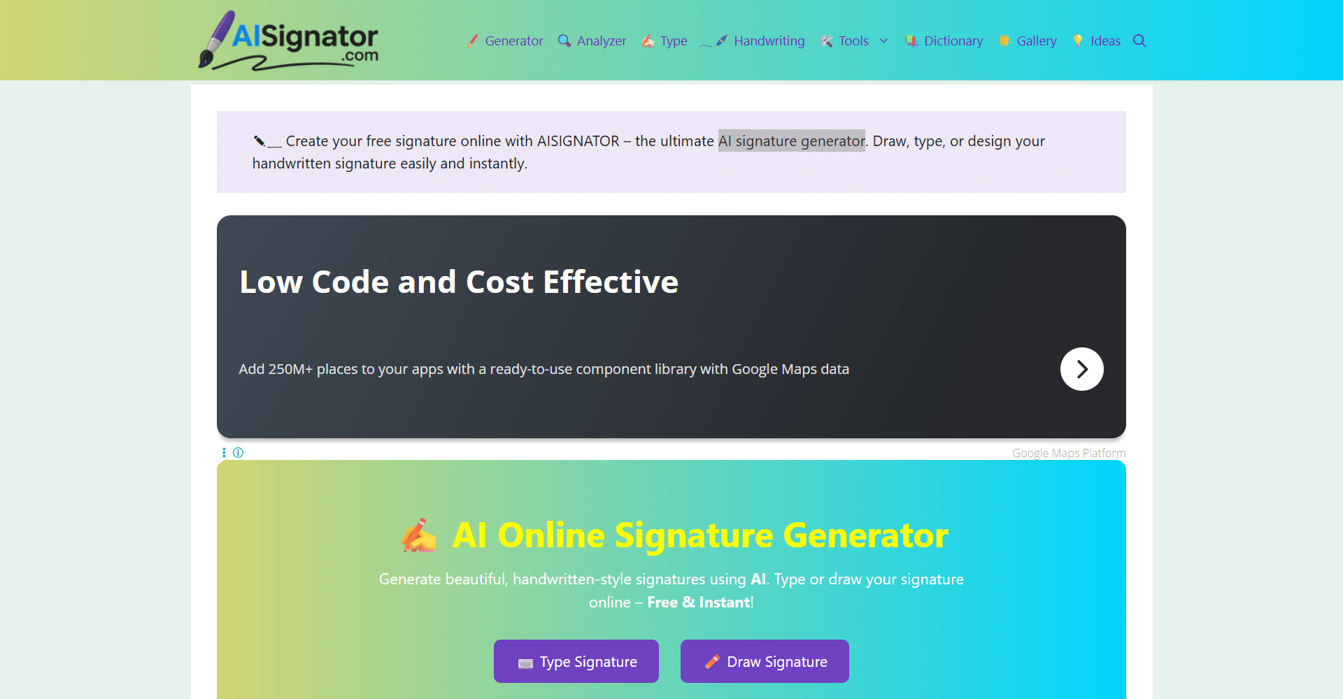 AISIGNATOR is a free AI-powered online signature generator that lets you create, customize, and download professional digital signatures instantly. You can type your name or draw your signature with a mouse or finger, and the AI will generate a realistic, stylish handwritten signature that’s ready for use on documents, emails, PDFs, or contracts. The platform is completely online, requires no signup or installation, and provides transparent background PNGs, JPGs, or SVGs for easy integration.