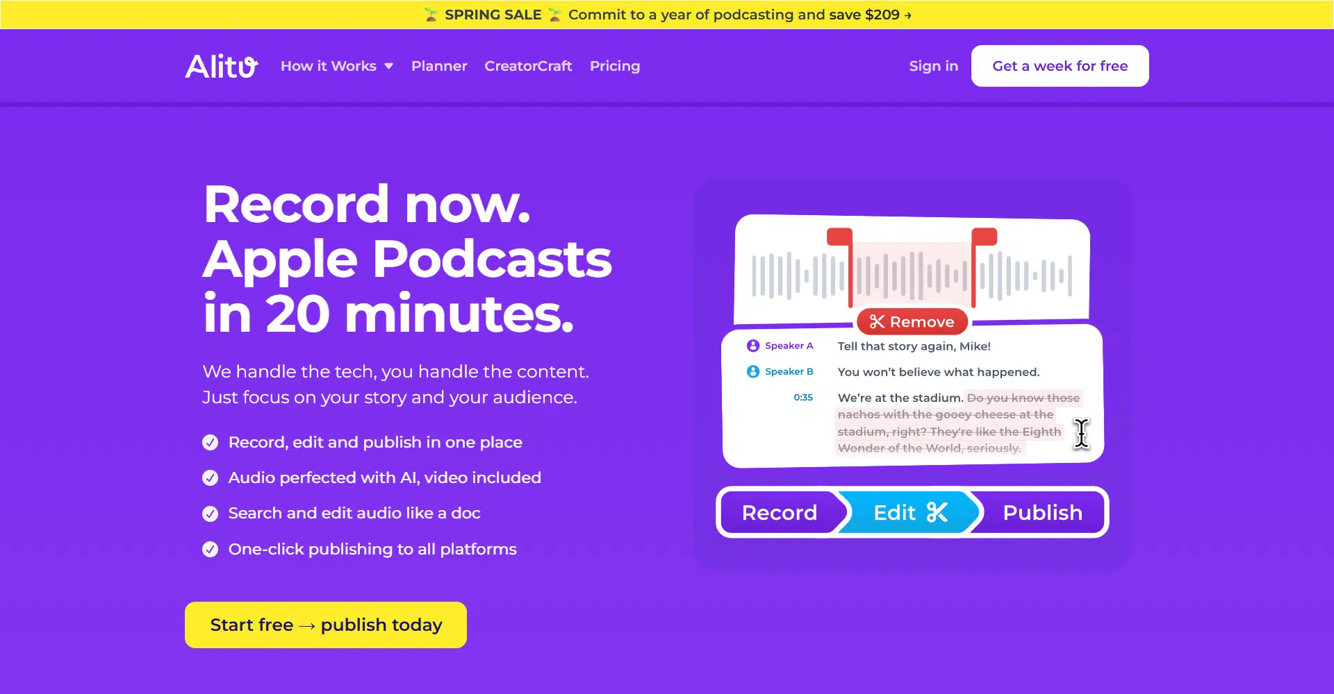 You can try Alitu on a 7 days free trial where you get full access to edit your podcasts and see how simple podcasting can be with AI by your side.