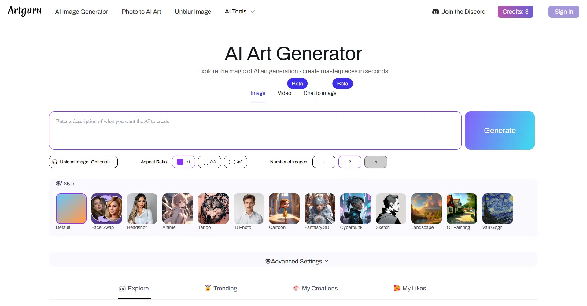 Art Guru also offers a photo-to-art generator. Upload your own photos, and the platform transforms them into magnificent artwork in various styles such as anime, cyberpunk, 3D, and more. This tool allows you to take your photos to a whole new level by applying artistic styles and effects that enhance the visual appeal of your images.