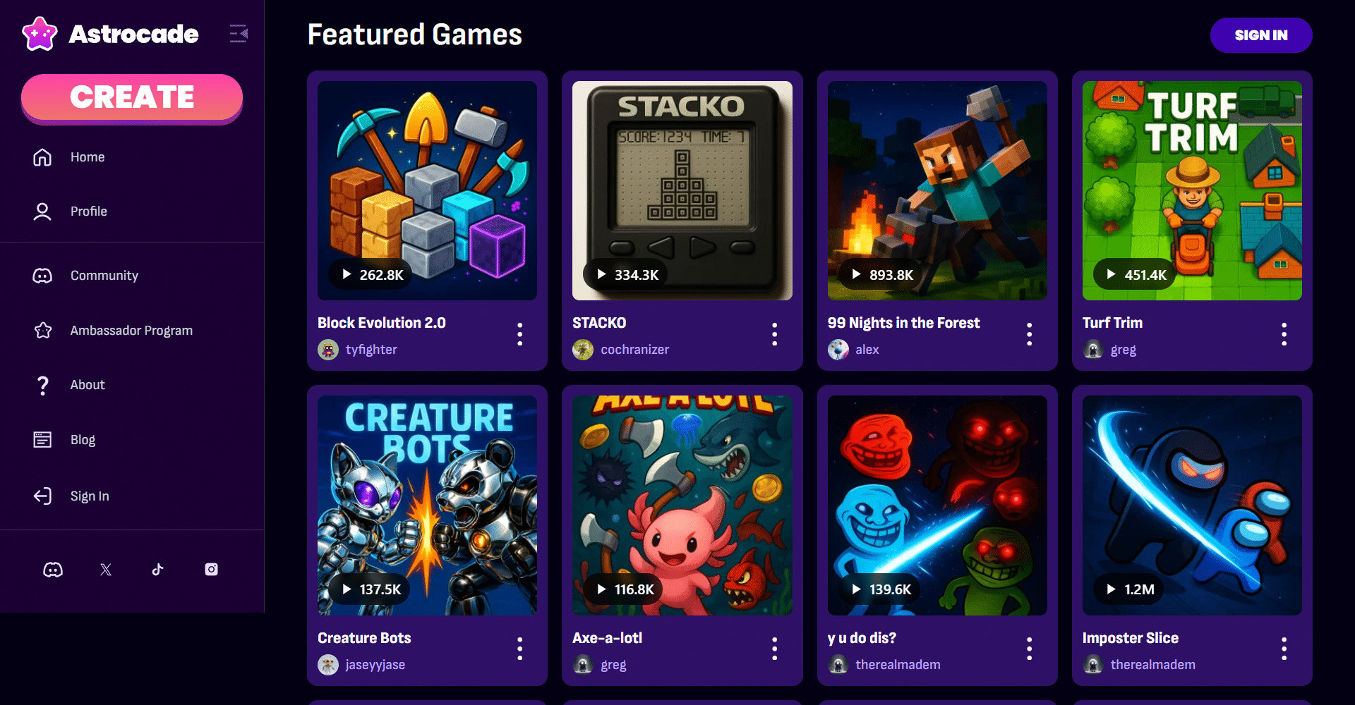 Astrocade also supports a community of creators, game jams, creator programs, and rewards, helping you connect, collaborate, and earn from your work. The platform also provides real-time feedback, AI optimization for gameplay balance, and cross-platform accessibility so your games can reach anyone, anywhere.
