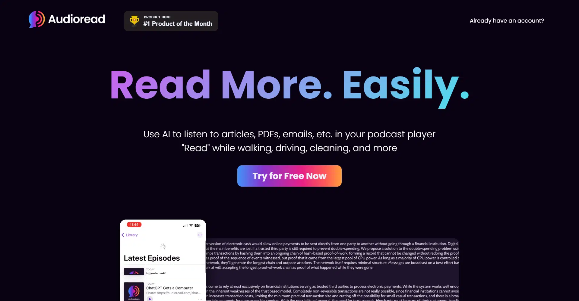 Introducing AudioRead: Picture yourself catching up on your favorite articles, PDFs, and emails while driving, walking, or even cleaning. With AudioRead, this is no longer a dream, it’s a reality. This innovative tool leverages the power of AI to convert written content into audio, allowing you to listen to your reading list just like a podcast!