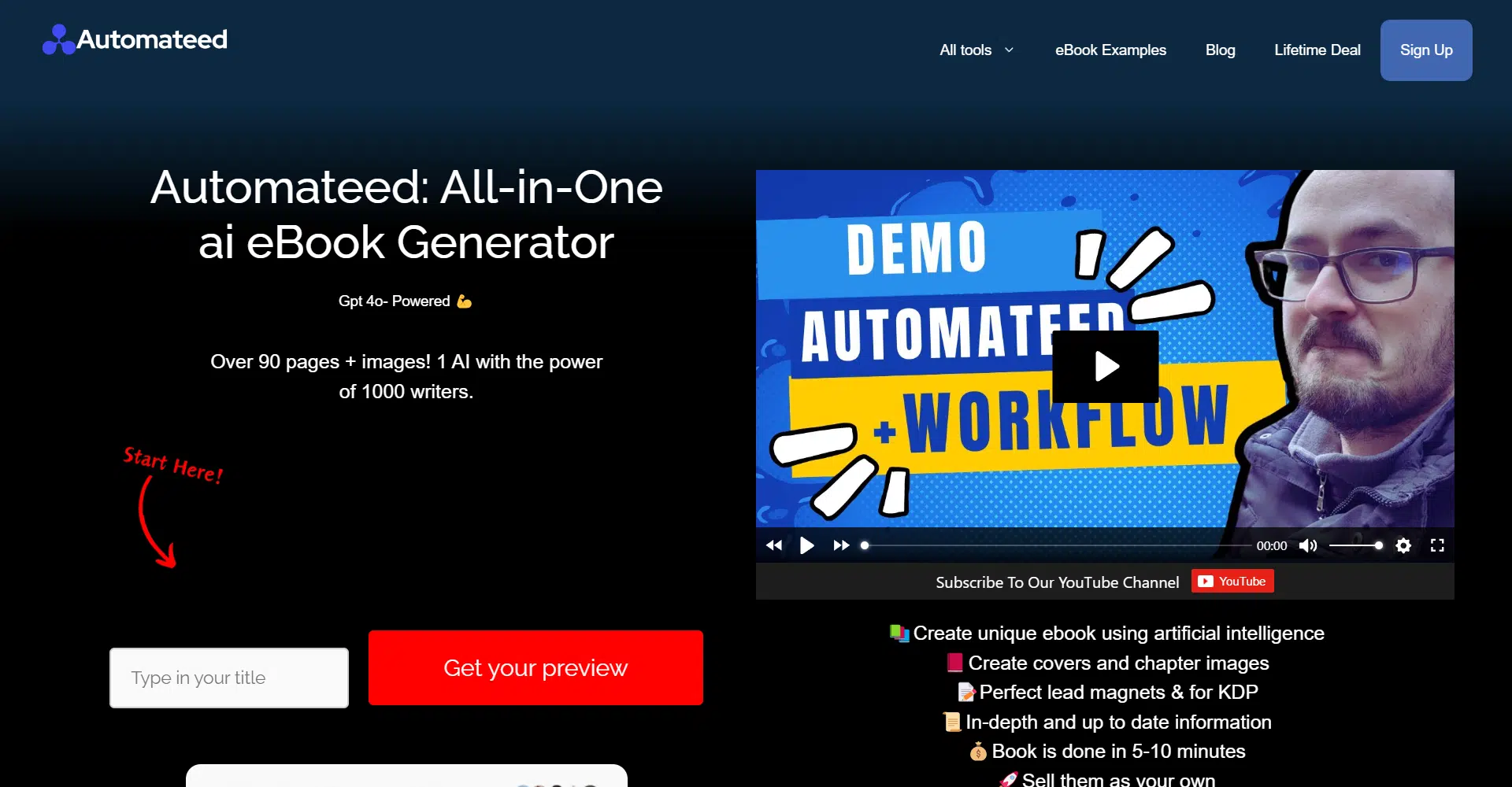 Introducing Automateed, the ultimate AI eBook generator powered by GPT-4! Imagine creating a unique eBook in just 5-10 minutes with the power of artificial intelligence. Automateed makes it possible to generate over 90 pages, complete with stunning images and engaging content, as if you had an army of 1000 writers working for you.