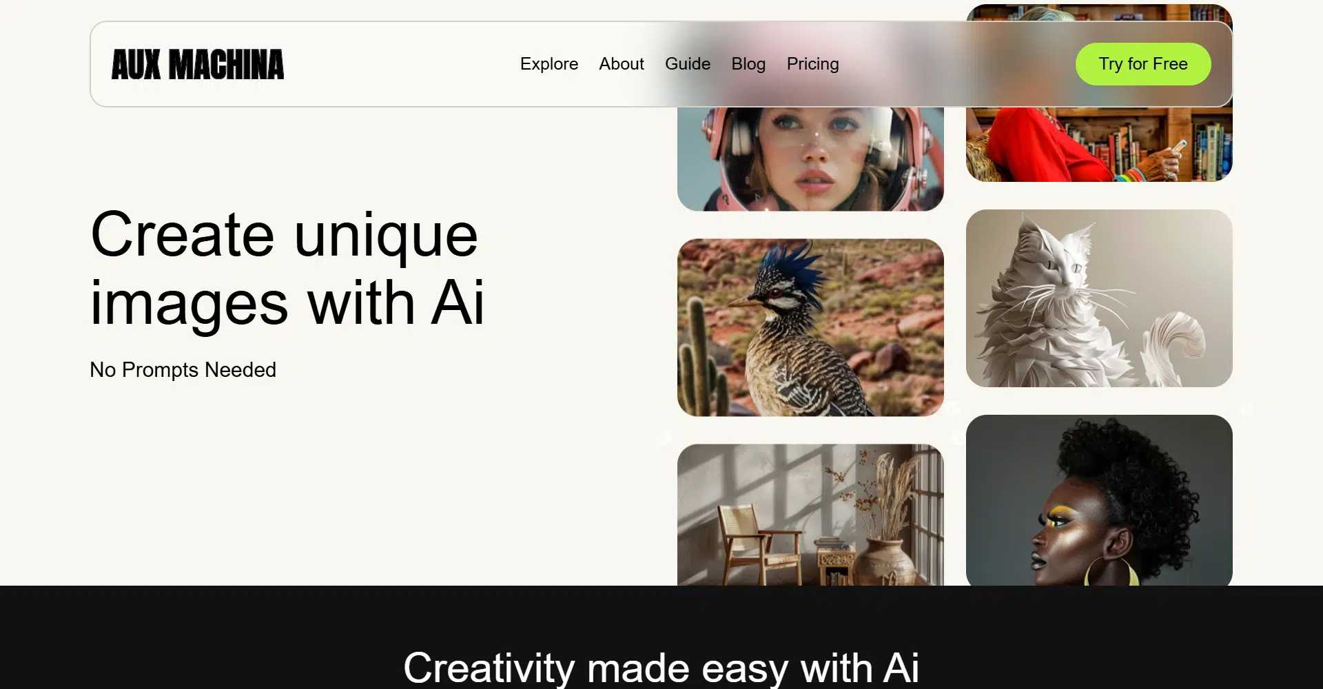 One of the platform’s key features is its ability to generate high-quality, royalty-free images that you own fully, with no licensing fees or restrictions. This means you can create as many images as you want, with complete creative freedom. The best part? Aux Machina is designed to be quick, affordable, and user-friendly, making it accessible to everyone—whether you’re a designer, marketer, or content creator.