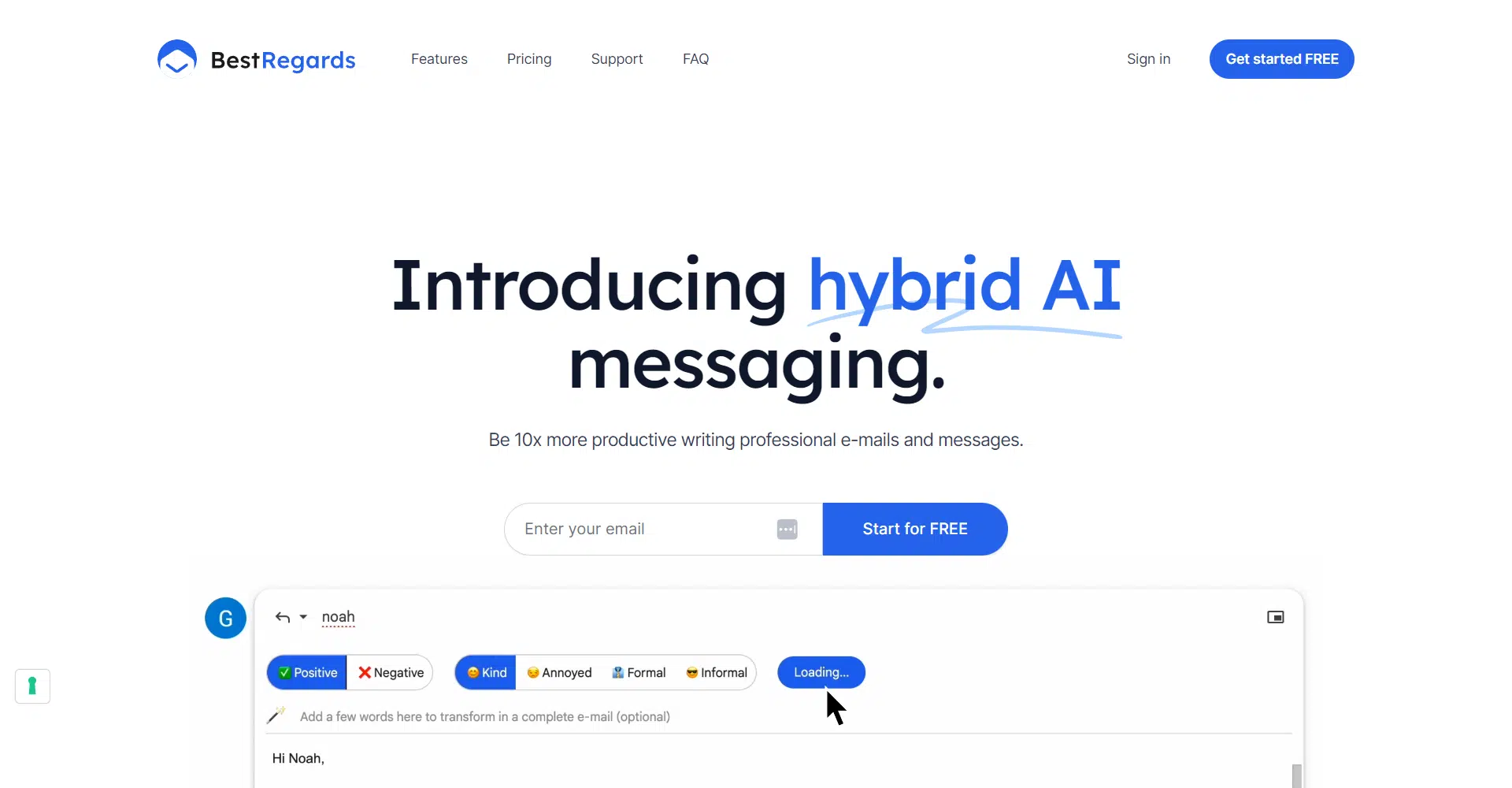 Best Regards is a powerful tool designed to enhance productivity in professional communication. This innovative hybrid AI messaging solution enables you to write emails and messages 10 times faster, streamlining their workflow significantly. With the user-friendly Chrome extension, it offers a seamless experience that saves hours of writing each week.
