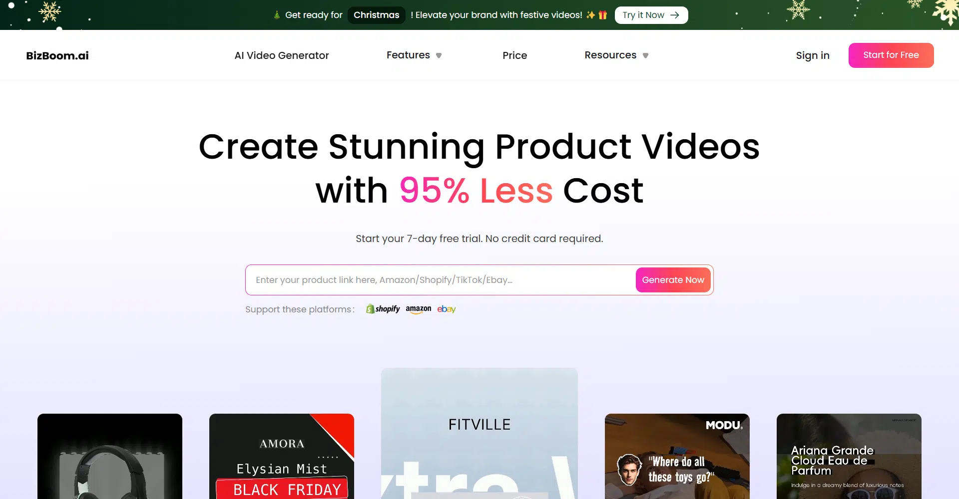 BizBoom AI makes creating stunning product videos faster, easier, and far more affordable than traditional methods. With its advanced AI tools, you can produce captivating videos that highlight your brand and products while slashing costs by up to 95%. Whether you’re a business owner, marketer, or creator, BizBoom AI simplifies video production and boosts your efficiency.