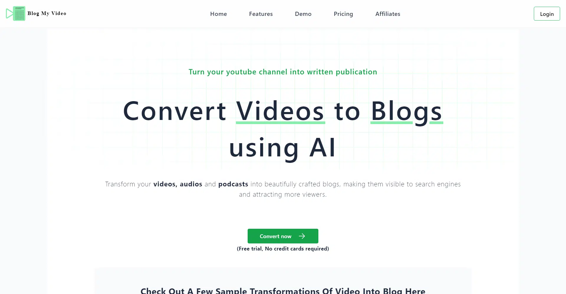 "Transform your videos into engaging blogs with AI! BlogMyVideo makes content creation quick, easy, and effortless—turning videos into words in no time!"