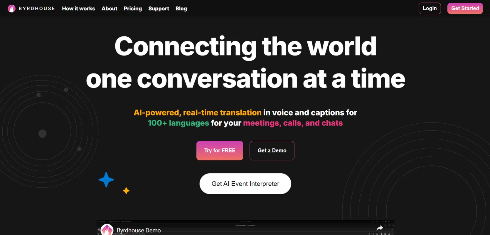 With support for 100+ languages, ByrdHouse offers instant voice and text translation during meetings, calls, and chats. Imagine seeing subtitles appear on your screen in your preferred language while someone speaks in another, it’s like having your own personal translator. ByrdHouse goes beyond simple translation; it provides meeting notes, screen sharing, translated text chats, and even auto-detects the language spoken, so you can focus on the conversation without interruptions.