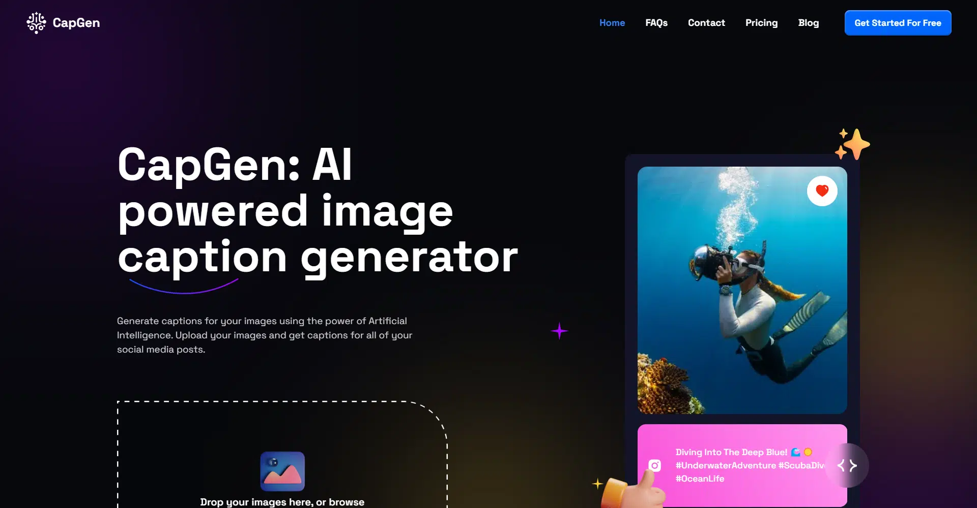 Meet CapGen, the ultimate AI-powered image caption generator that brings your social media posts to life. Whether you’re sharing a selfie, a travel snapshot, or a product photo, CapGen creates unique, engaging captions tailored to make every post stand out. Simply upload your images, and let CapGen’s advanced AI do the magic, delivering captions that capture the essence of your visuals in seconds.