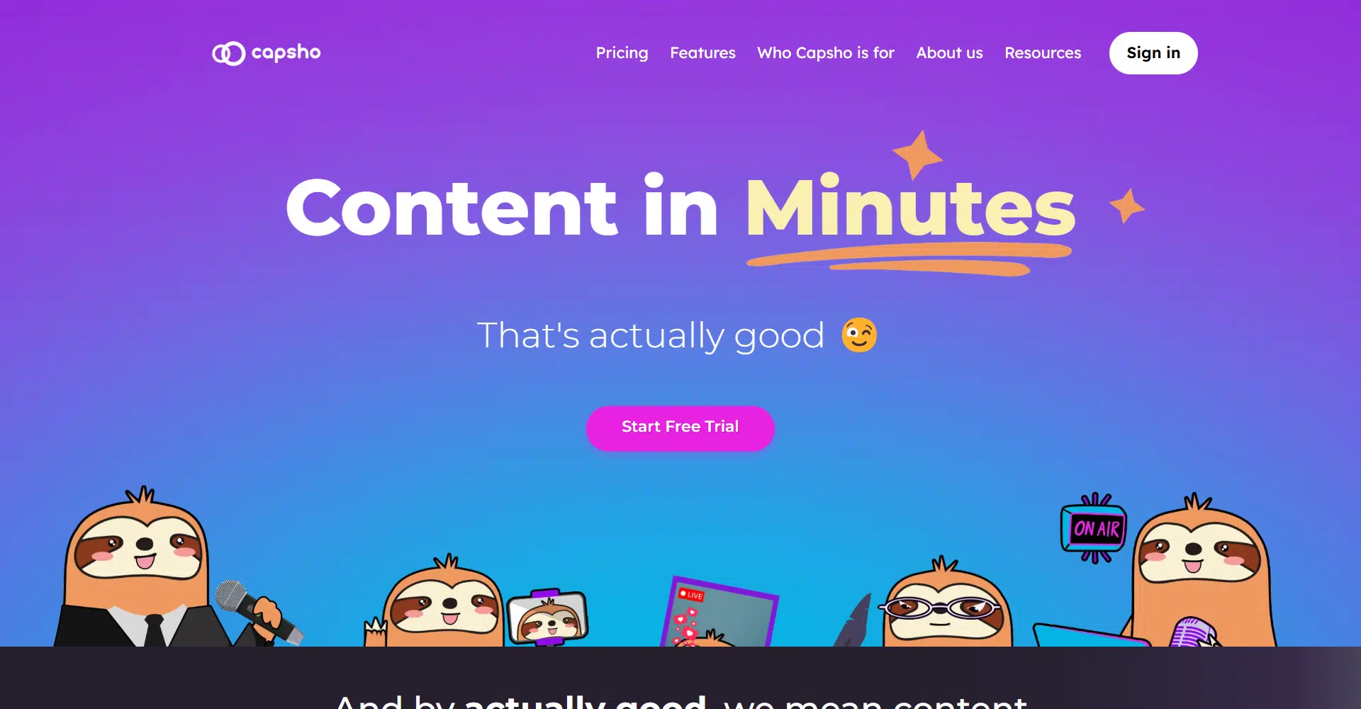And the best part? For a 14 day free trial, you’ll get 120 minutes of content processing, access to personas trained to match your voice, and more. This trial gives you a risk-free opportunity to explore how Capsho can help streamline your content creation and marketing.