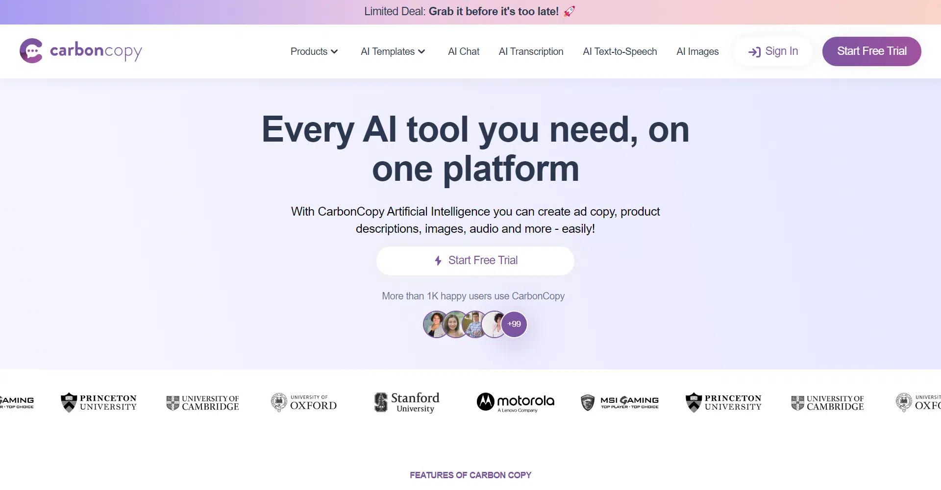 And the best part? CarbonCopy offers a free plan that lets you explore all these features with up to 500 words in over 100 languages. It’s a great way to experience the platform and see how it can revolutionize your content creation process. With CarbonCopy, every tool you need is right at your fingertips, making content creation faster, easier, and more effective than ever before.