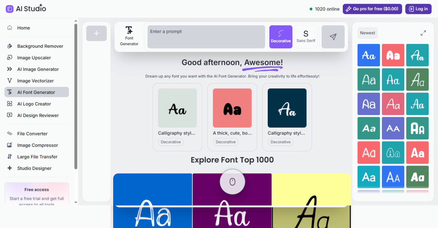 And the best part? On a free plan, you can get 5,000 credits to generate fonts, giving you plenty of flexibility to experiment with multiple styles without paying upfront.