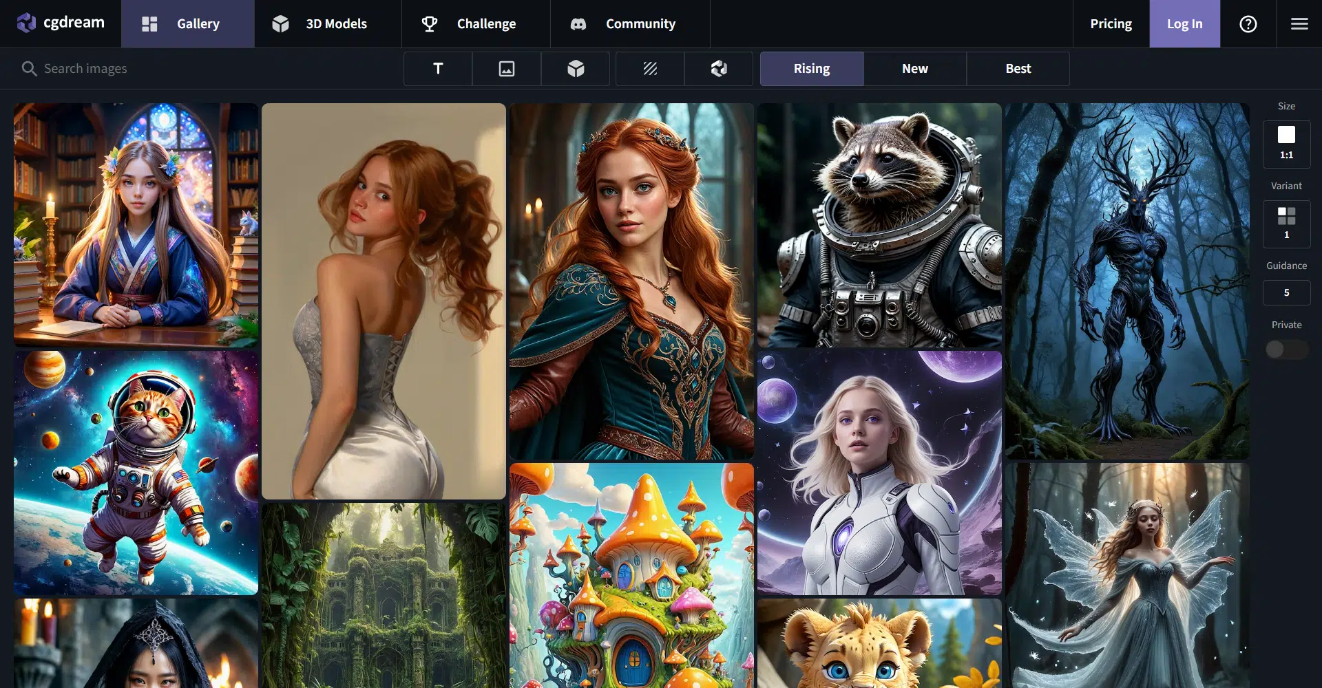 Explore CGDream, a cutting-edge AI-driven tool that transforms your ideas into stunning visual creations. Whether you’re a digital artist, graphic designer, game developer, marketer, or simply passionate about visual design, CGDream simplifies the process of creating detailed images from text prompts or existing images.