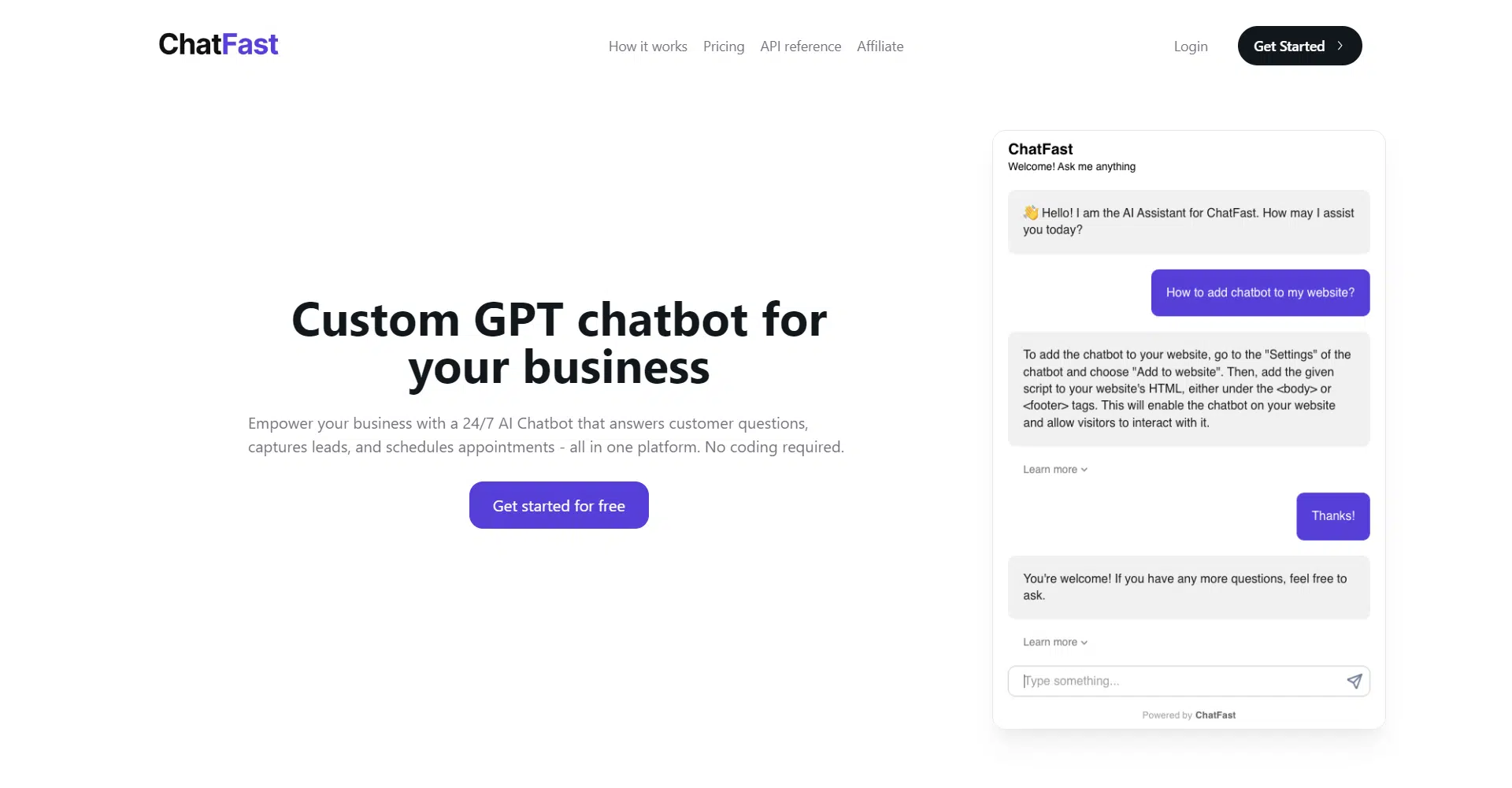 ChatFast is a powerful platform designed to empower businesses with a custom GPT chatbot that operates 24/7. This AI-driven chatbot can handle customer questions, capture leads, and even schedule appointments, all without requiring any coding skills. With ChatFast, you can create a chatbot tailored to your business needs by training it with your own data, ensuring that it provides accurate and relevant responses to your customers.