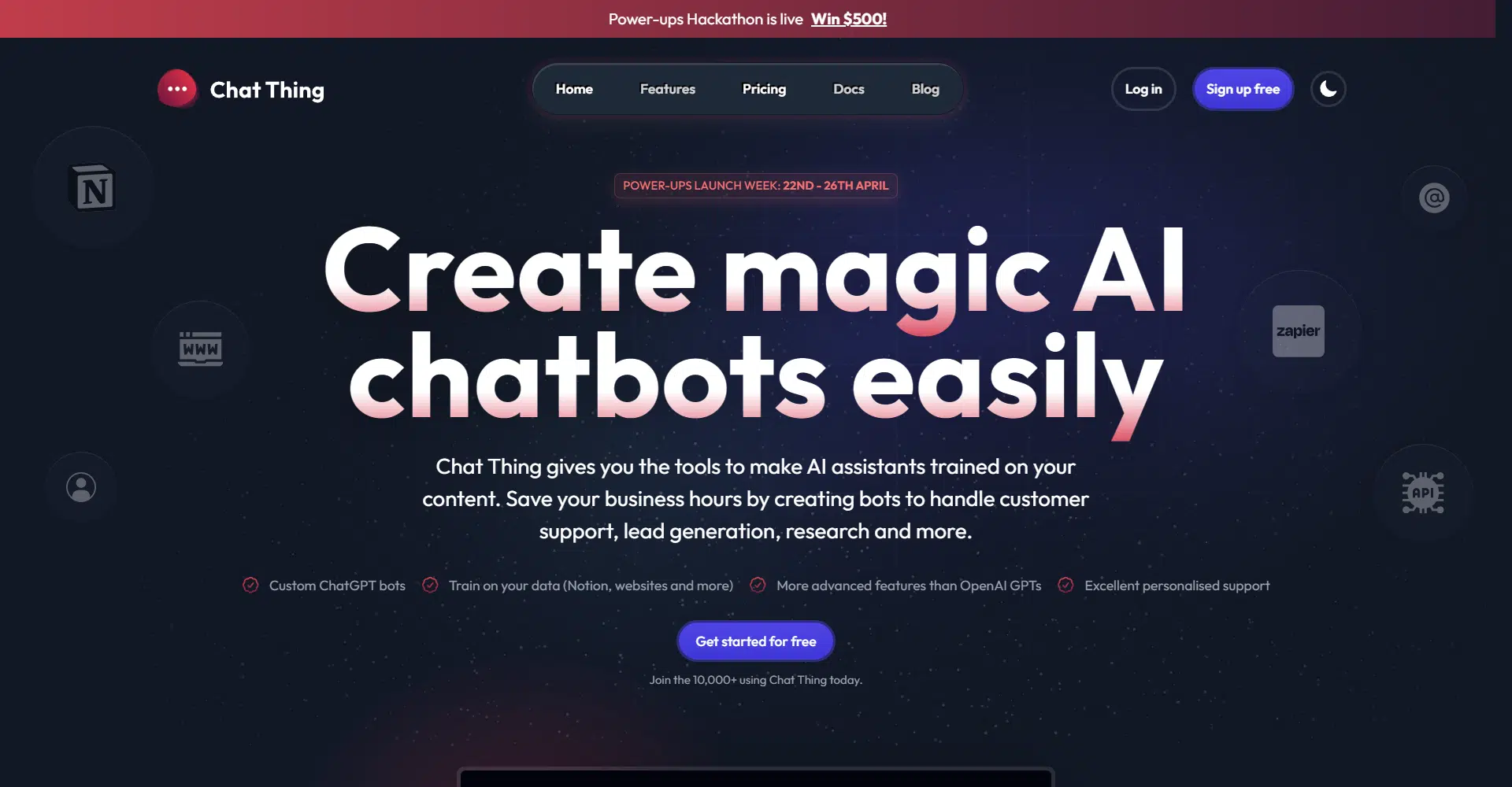 Best of all, businesses can get started for free with Chat Thing’s free plan, which includes access to one chatbot, one data source, 600,000 storage tokens, and 80,000 message tokens. Join Chat Thing today and revolutionize customer interactions with the power of AI!