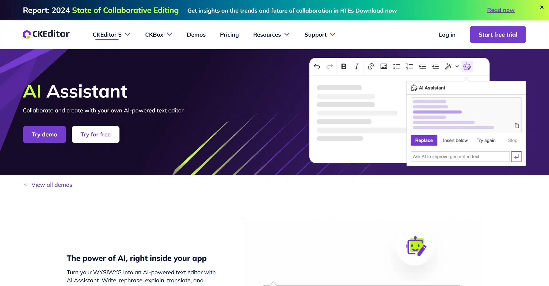 "Create smarter, faster, and better with CKEditor AI Assistant—your ultimate AI-powered text editor for seamless collaboration and brilliant content creation!"