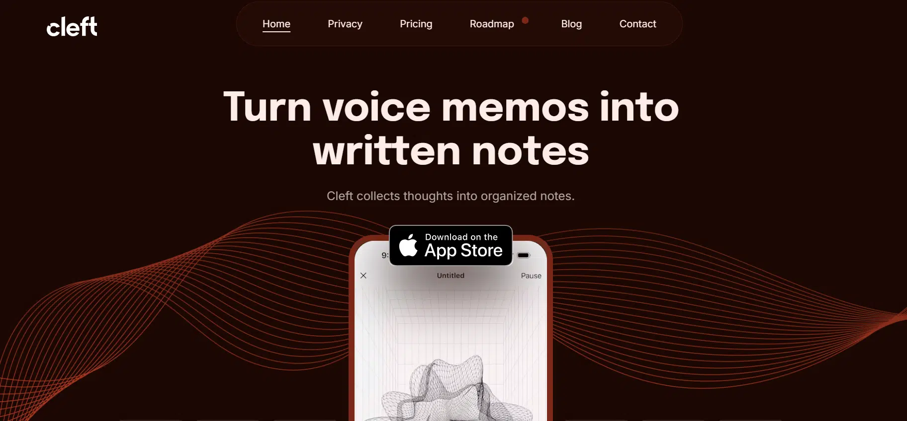 Cleft is a voice-focused AI note-taking app that transforms spoken thoughts into organized, editable text with multi-modal input, structured organization, and flexible export/sharing.