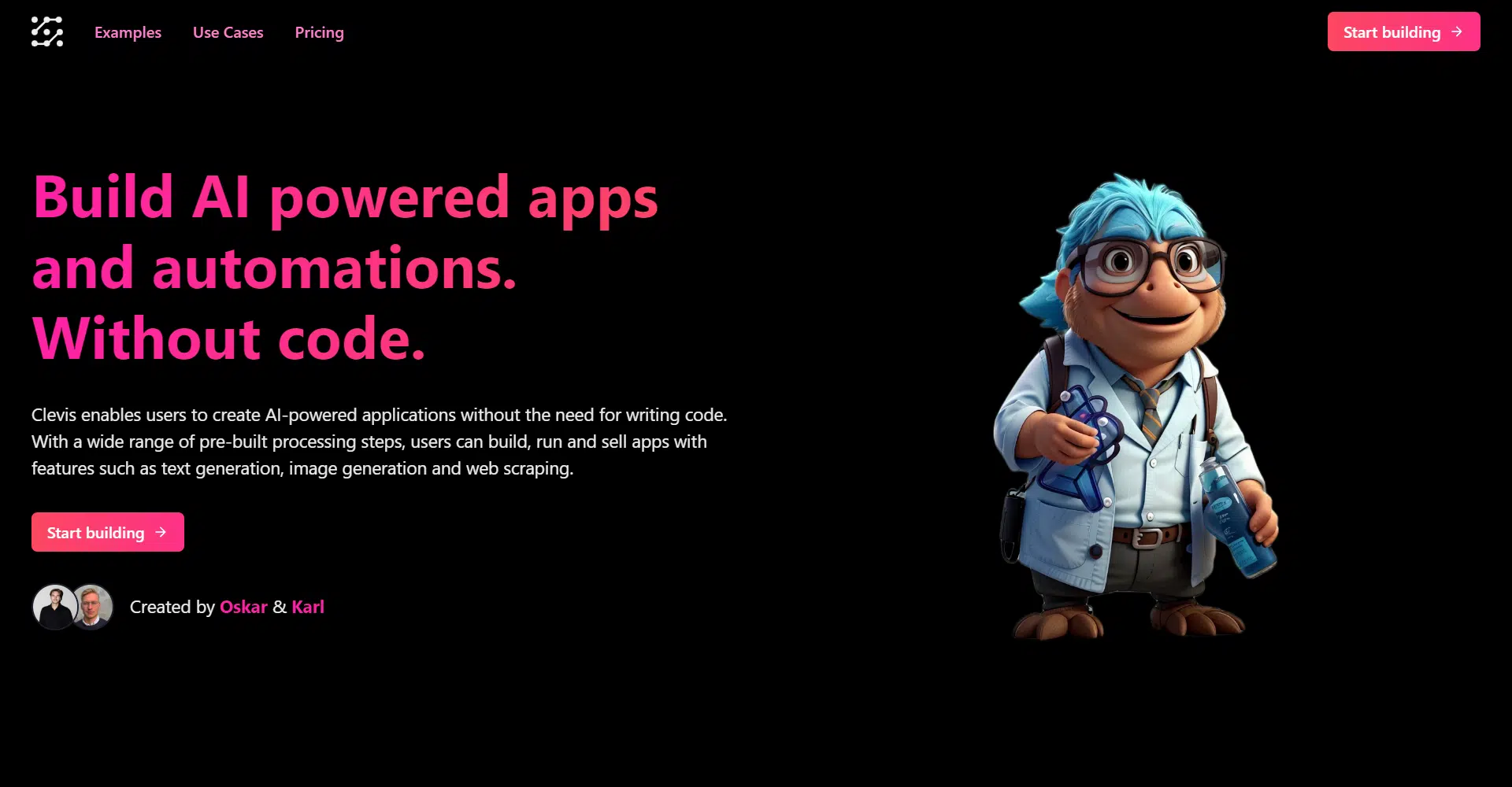 Clevis is a no-code platform that allows users to create AI-powered applications and automations effortlessly. Whether you’re building a recipe creator, character generator, or even a WordPress blog post generator, Clevis provides the tools to bring your ideas to life without writing a single line of code. With features like text generation, image generation, and web scraping, you can build, run, and even sell your apps.