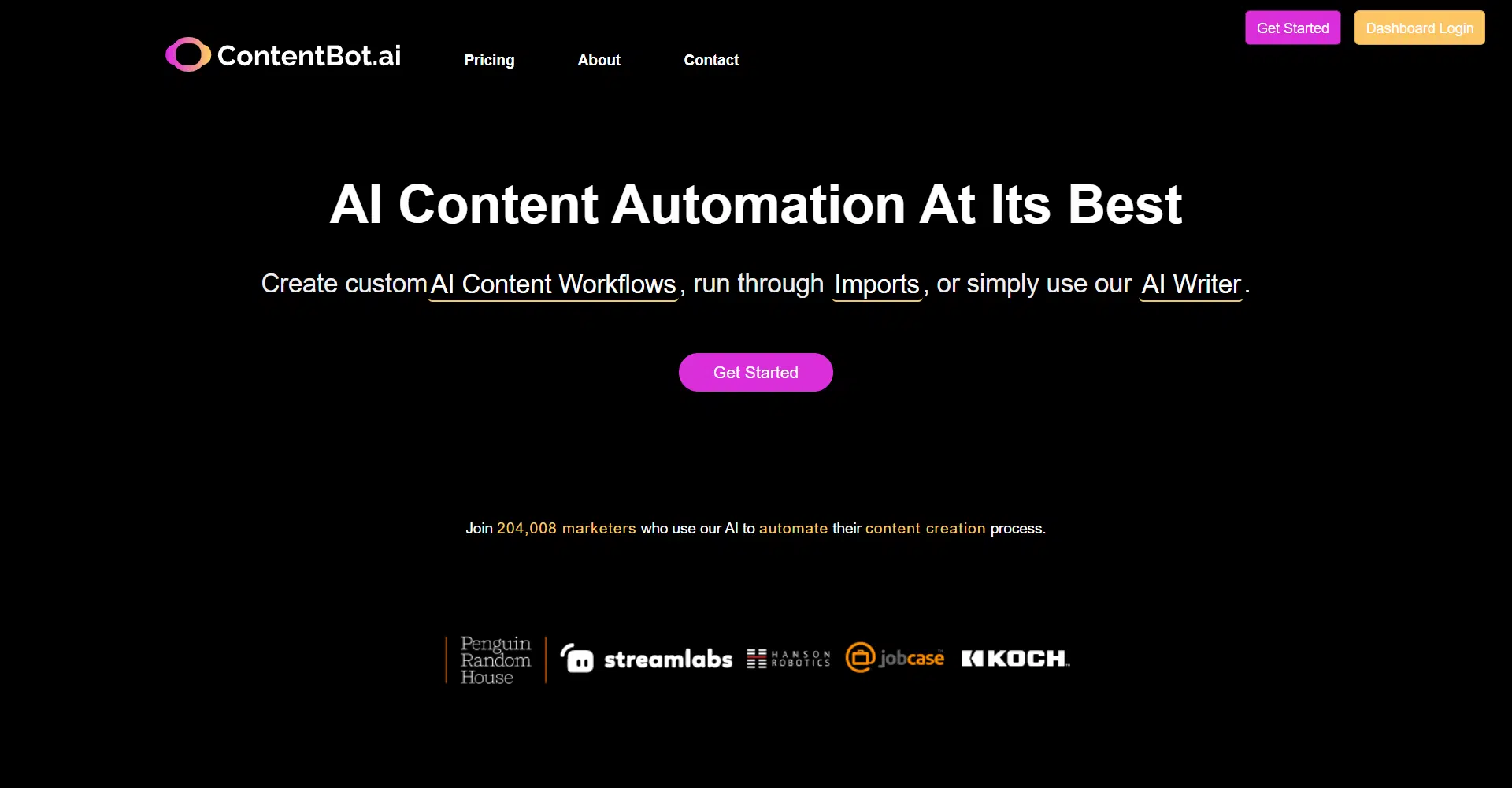 "Content Bot AI: Automate content like a pro! Create custom workflows, run imports, or let our AI Writer handle it all. Content made easy, every time!"