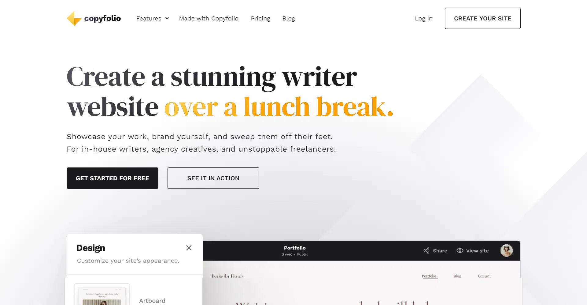 Creating your website with Copyfolio is straightforward. You can choose from mobile-ready templates and customize them to fit your style and brand. It’s designed so you can build a website that looks polished and professional without needing design skills.