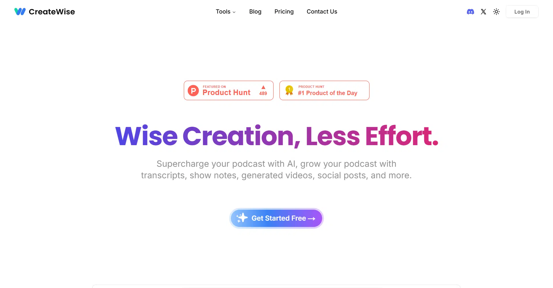 CreateWise is designed to help podcasters elevate their content with minimal effort. This AI-powered platform streamlines the podcasting process by generating transcripts, show notes, social media posts, and more, so creators can focus on what matters most—creating. With CreateWise, users can transform their podcast episodes into editable transcripts that feature speaker diarization, making the content more accessible. The AI also generates show notes and summaries, saving hours of editing and providing ready-to-share materials for social media.