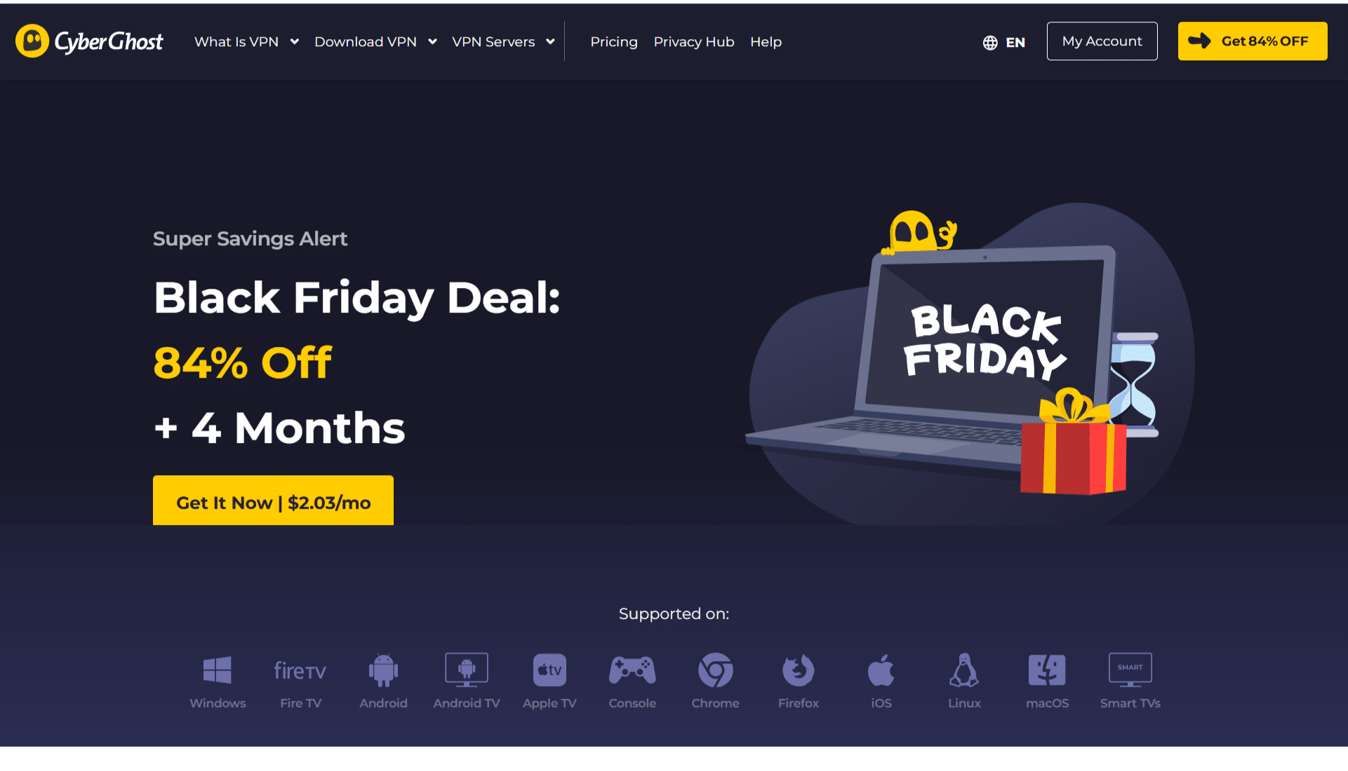 CyberGhost VPN provides advanced privacy and online security for everyone who wants to browse, stream, and game safely. They offer strong encryption, a strict no-logs policy, and access to servers in 100 countries worldwide, ensuring your online identity and data stay private. CyberGhost VPN supports Windows, macOS, Android, iOS, Linux, Smart TVs, game consoles, and browser extensions, letting you protect up to 7 devices simultaneously with a single subscription.