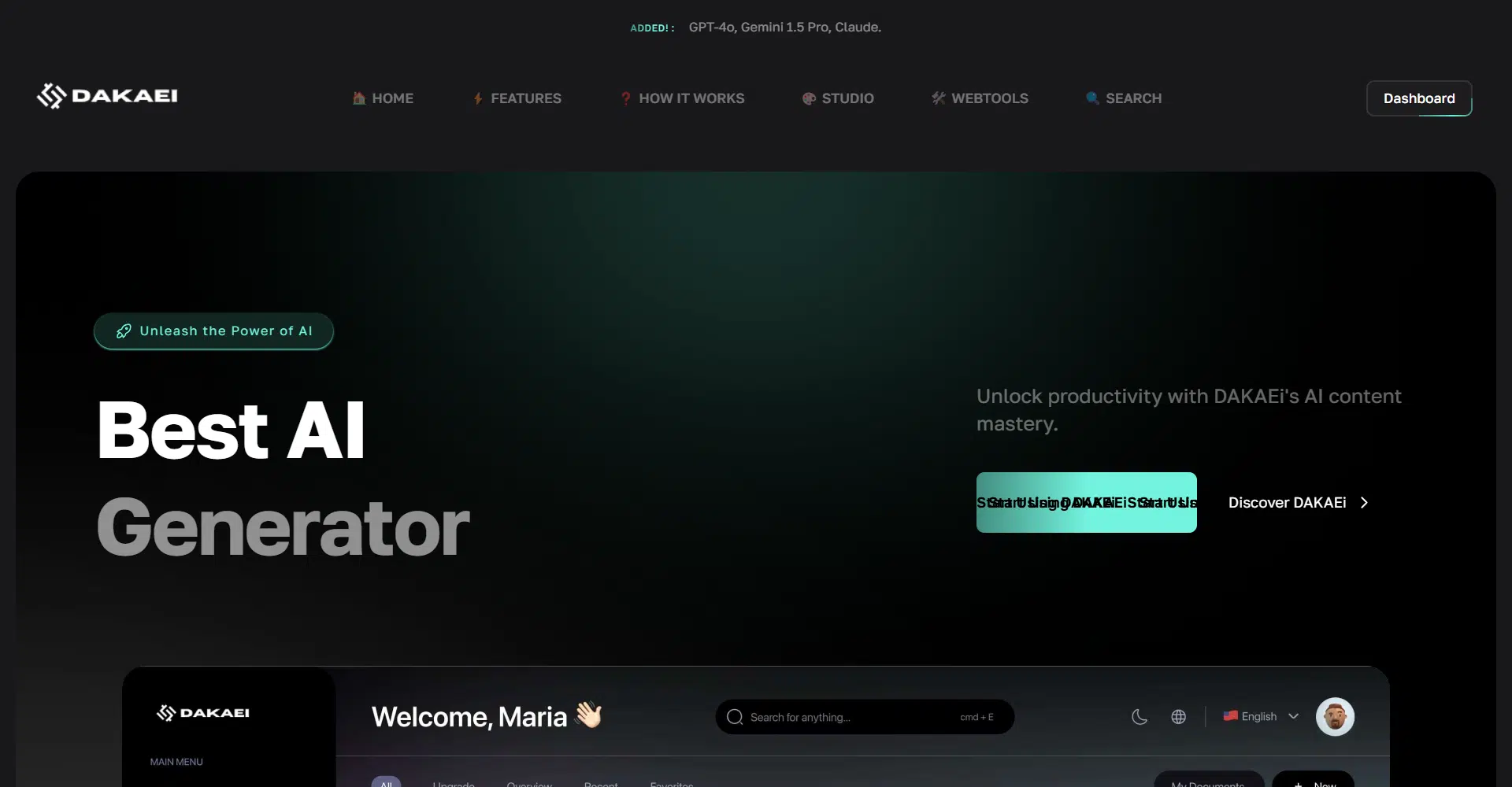 "Dakaei AI: Your one-stop tool for content creation—generate text, images, code, chatbots, and more. Create smarter, faster, and with ease!"