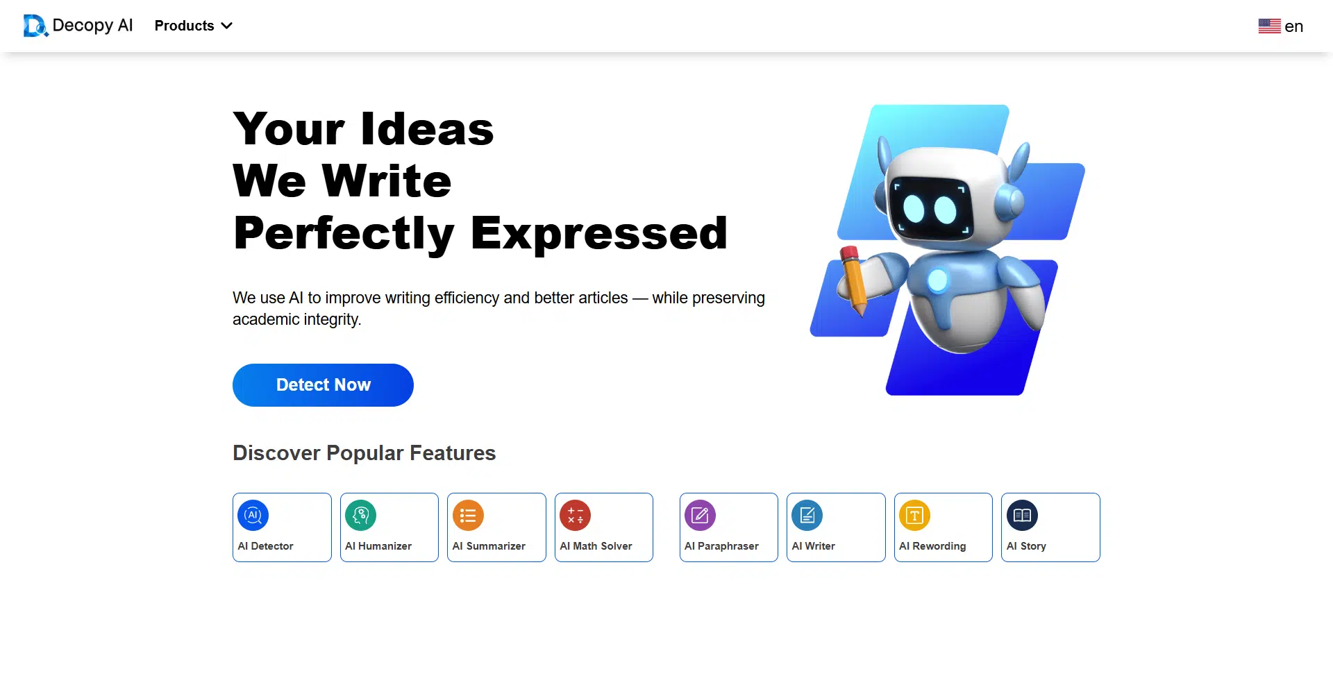 Decopy AI is your ultimate writing companion, designed to help you craft well-expressed, original content with ease. Whether you’re a student, professional, or creative, Decopy AI enhances your writing process by refining your tone, improving clarity, and ensuring academic integrity. The platform is equipped with powerful tools like the AI Detector, which identifies AI-generated text with 99% accuracy, ensuring that your work remains authentic and free from plagiarism. This makes it an excellent choice for both academic and professional writing.