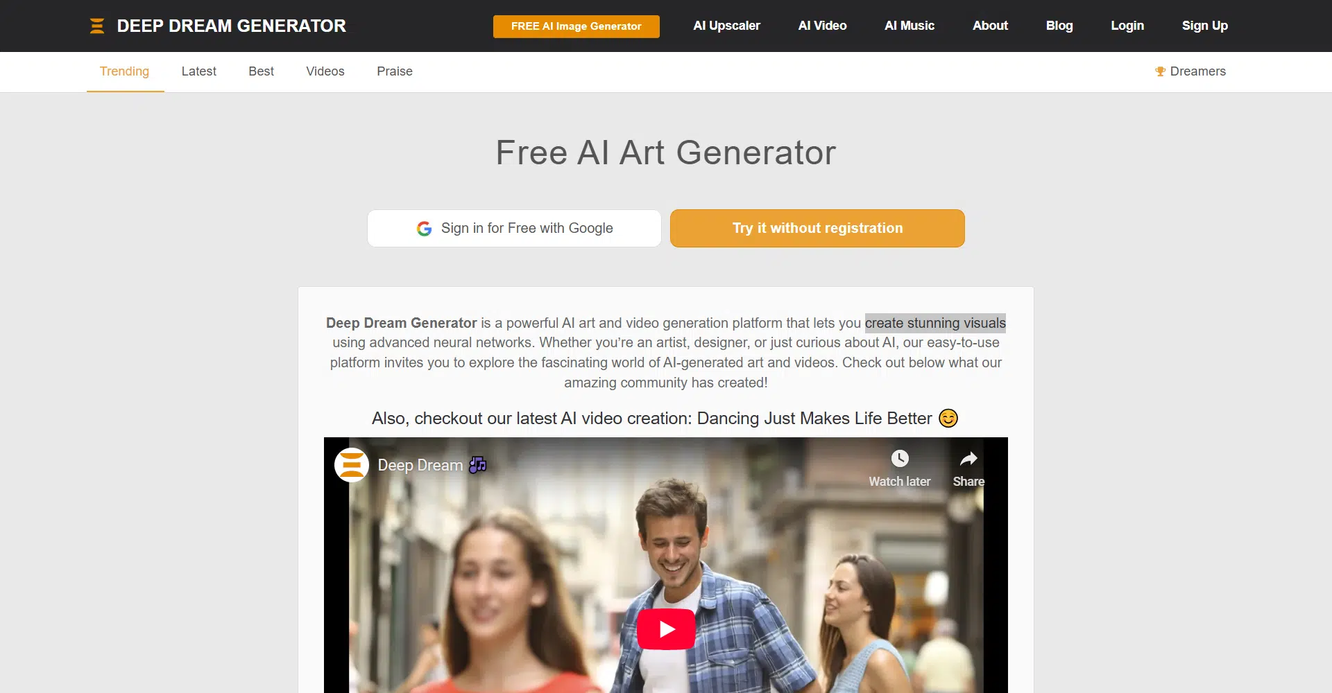 And the best part? Deep Dream Generator lets you start creating AI images for free without signing up. Free users receive energy credits to generate images, making it easy to experiment with AI art before upgrading for additional generations and advanced features.