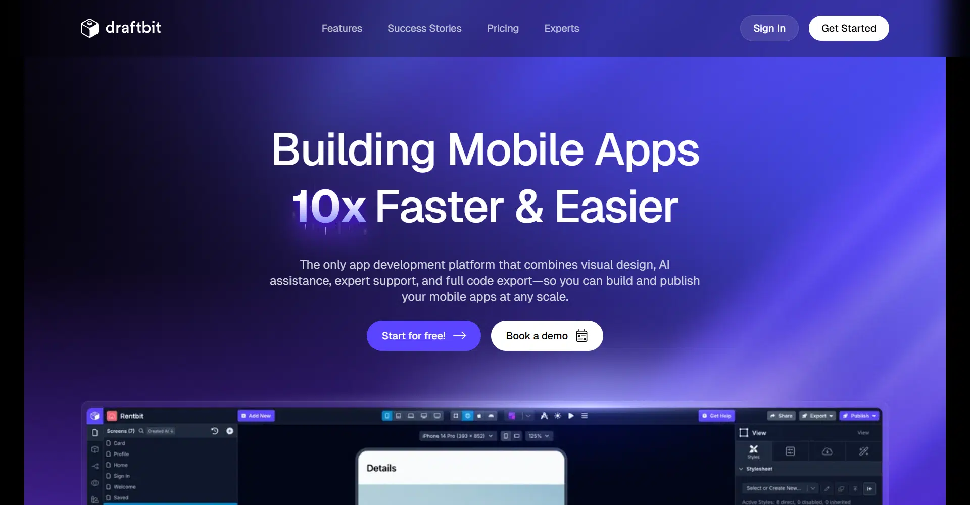 Draftbit is a powerful platform that helps you build mobile apps 10x faster and easier by combining visual design, AI assistance, expert support, and full code export. Whether you’re working solo or with a team, Draftbit makes the app-building process smooth and efficient, allowing you to go from idea to launch in record time.