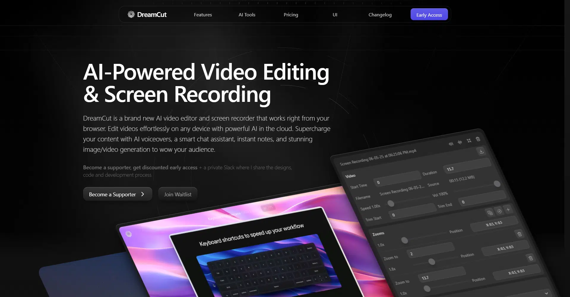 DreamCut is an AI-powered video editor and screen recorder built for creators who want powerful tools without the learning curve. Whether you’re editing videos, capturing your screen, or adding creative touches, DreamCut makes it simple—all from your browser. You don’t need fancy software or high-end equipment. Just log in and start editing on any device.