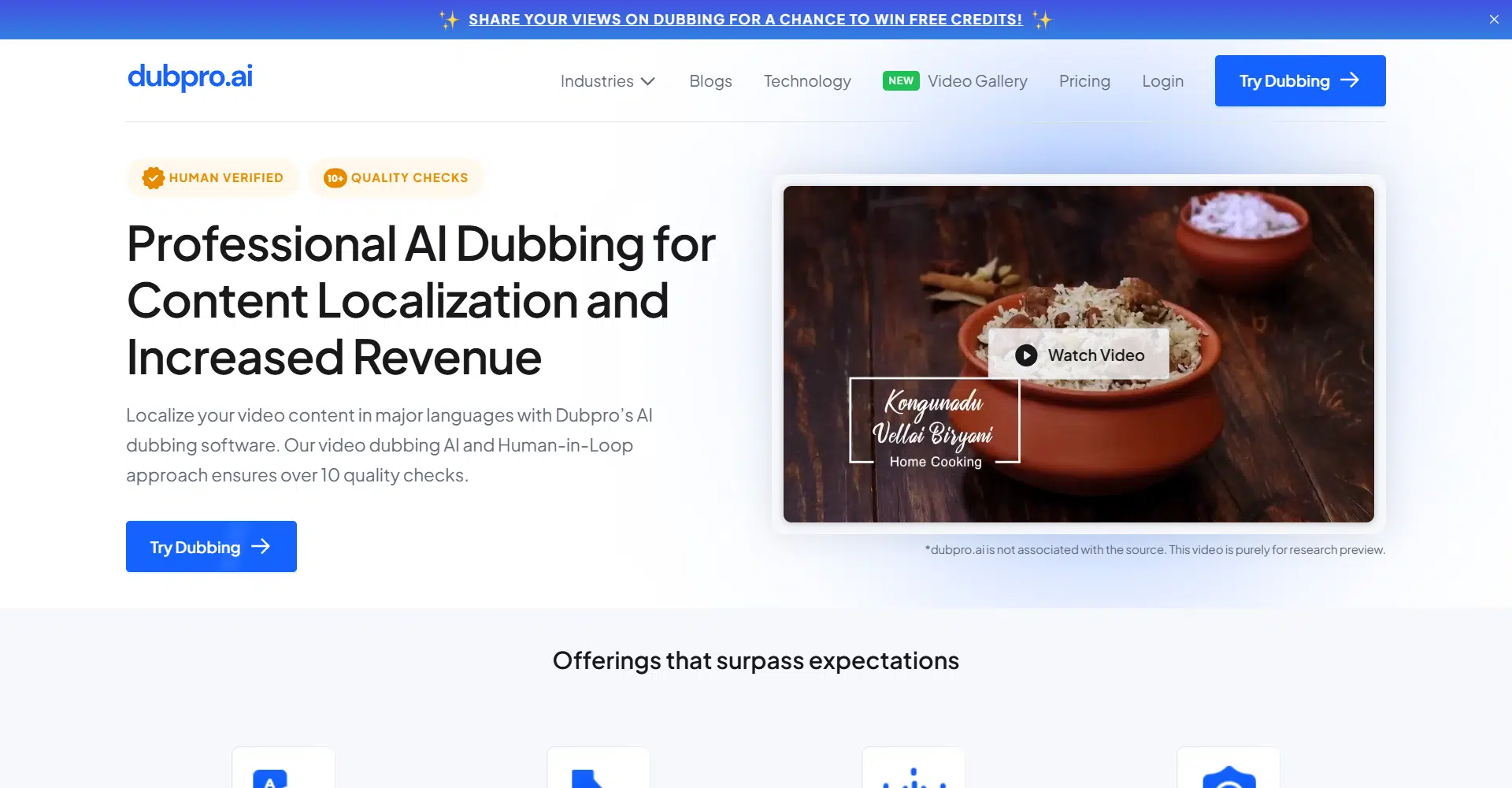 On the free plan, you can dub one video before signing up, giving you a firsthand look at DubPro’s powerful features. Start localizing your content today!