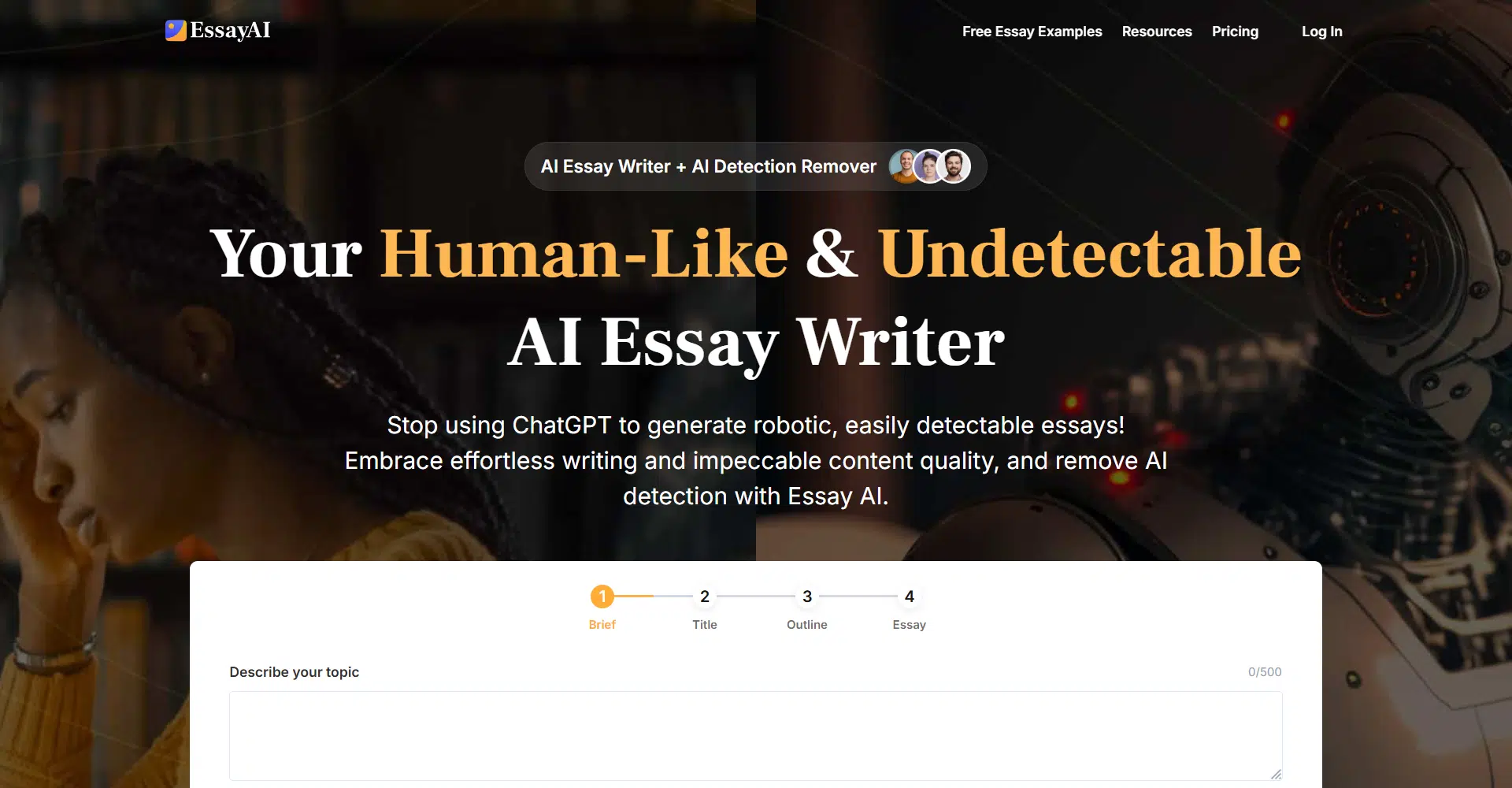 Essay AI is an advanced AI-powered writing tool designed to help you craft high-quality, human-like essays that are undetectable by popular AI detection tools like Turnitin and GPTZero. Unlike many other essay generators, Essay AI produces content that reads like it was written by a professional, ensuring your work passes academic integrity checks with ease. With over 100 million professionally written essays as training data, this tool creates essays that are rich in detail and nuances, making them sound completely natural and human.