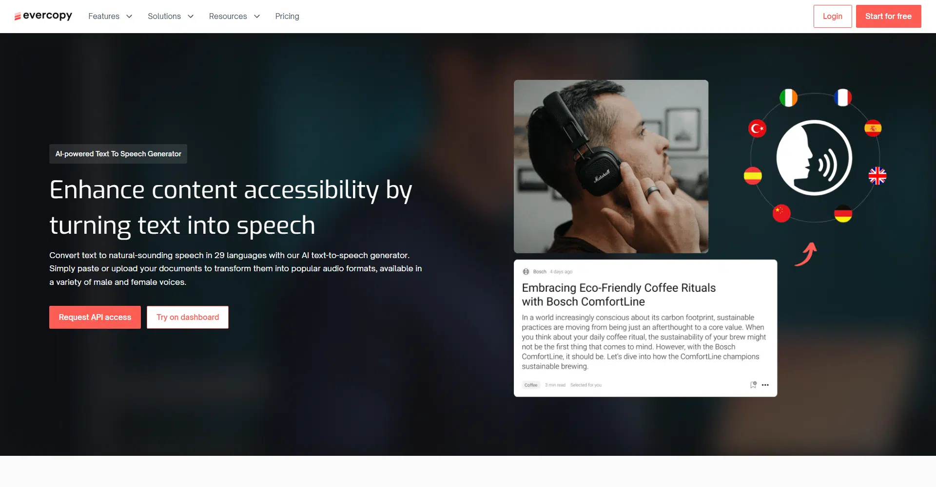 "Turn text into natural, lifelike voices with Evercopy AI—your go-to tool for seamless text-to-speech magic in seconds!"