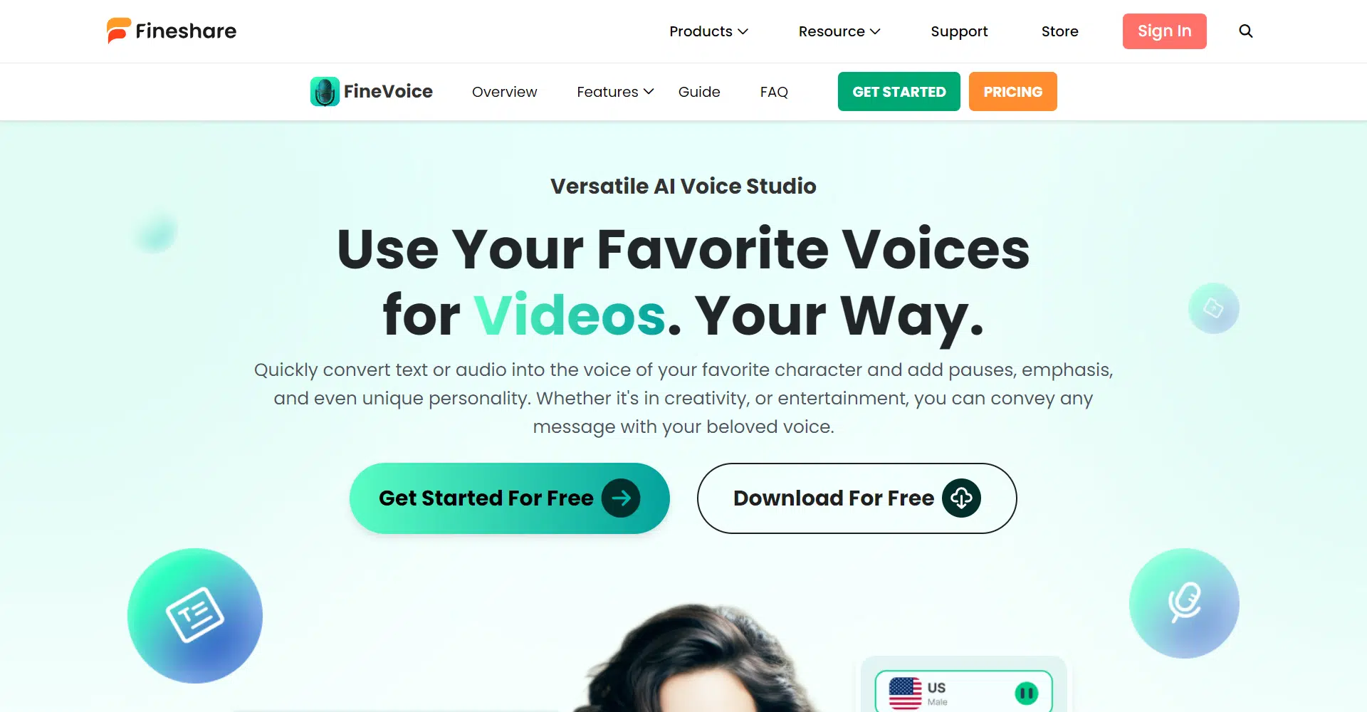 Welcome to FineVoice, your ultimate AI voice studio that brings your creative visions to life with a symphony of over 1000 diverse AI voices in 40+ languages and accents. Unleash your imagination as you wield the power to control pitch, tone, and even mimic voices of different ages. Your voice, your way!