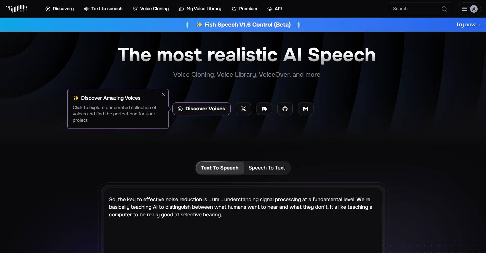 Fish Audio brings you the most realistic AI speech, offering advanced solutions like voice cloning, an extensive voice library, and professional voiceovers. Whether you need lifelike text-to-speech (TTS) or a complete Voice Agent, Fish Audio goes beyond standard tools to provide seamless, high-quality audio generation.