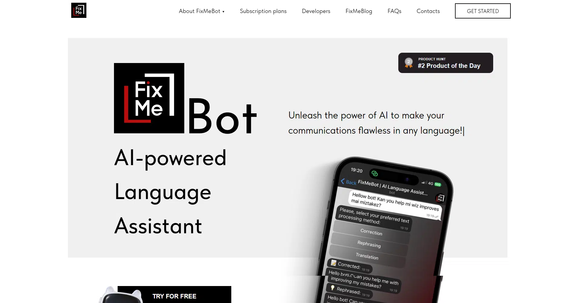 Curious to see what FixMeBot can do? Start with their free plan, which offers 1,000 trial characters. Enjoy the powerful correction, rephrasing, and translation features to experience how FixMeBot can revolutionize your communication. Ready to elevate your writing? Try FixMeBot today and discover the difference!