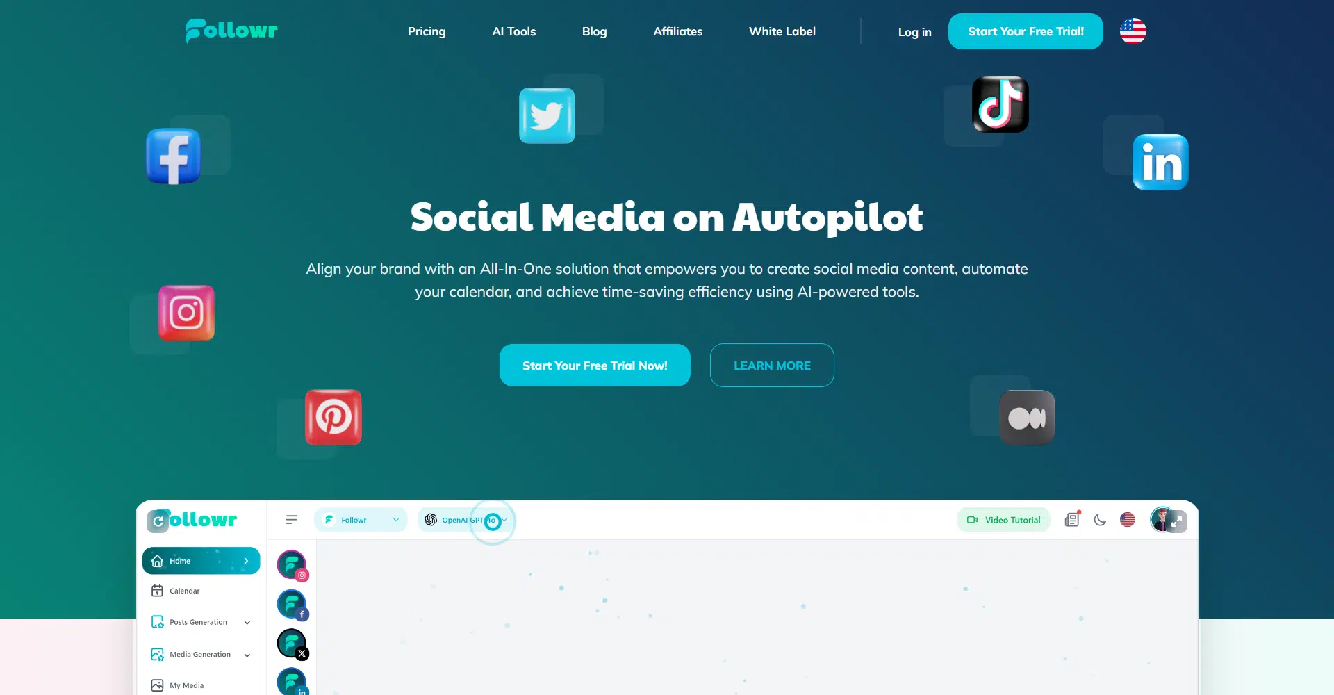 Followr is your all-in-one social media solution that helps you manage, create, and optimize content across all your platforms effortlessly. With AI-powered tools, Followr empowers you to automate your social media calendar, create engaging content, and gain insights into your performance, saving you time and boosting your efficiency.