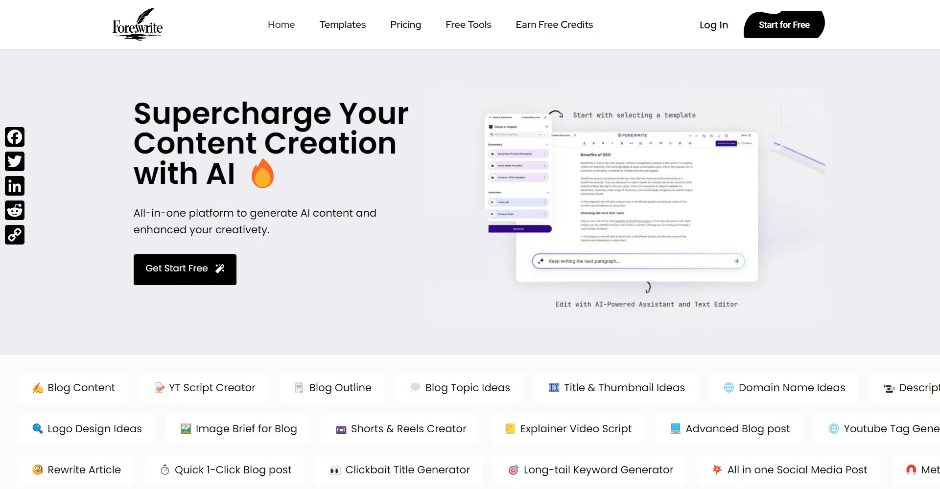 ForeWrite is an all-in-one AI content creation platform designed to supercharge your creative workflow. Whether you’re a YouTuber, blogger, marketer, or content creator, ForeWrite provides the tools to streamline your content generation and enhance your creativity. With a range of powerful features, ForeWrite can help you create YT scripts, blog outlines, topic ideas, domain names, video descriptions and tags, and even Instagram captions. You can also generate clickbait titles, long-tail keywords, meta titles, and social media posts to maximize your content’s reach.