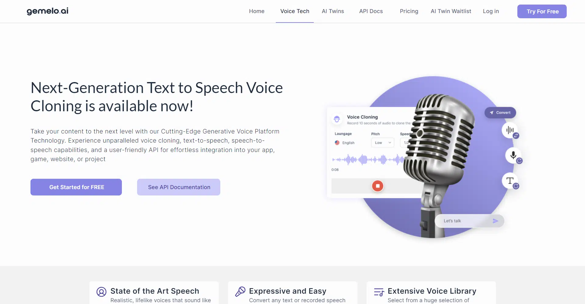 With Gemelo, the possibilities are limitless. Choose from an extensive library of expressive voices or create your own clone with just 10 seconds of audio input. Whether you’re crafting engaging educational content, immersive gaming experiences, captivating video narratives, or personalized healthcare interactions, Gemelo empowers you to captivate your audience like never before.