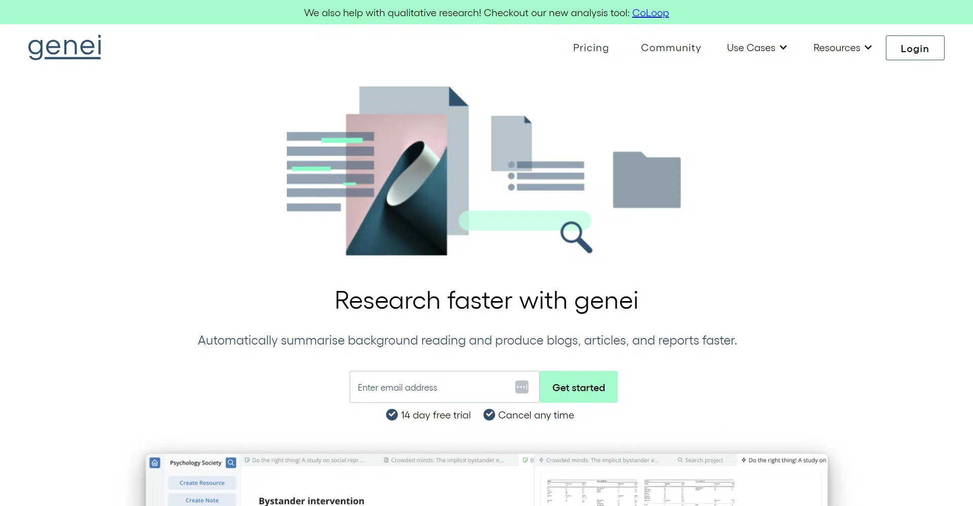 The feedback speaks volumes; 95% of users say Genei makes them more productive, and 98% agree it saves them time. Ready to transform the research and writing process? Start with a 14-day free trial and experience the benefits firsthand. Users can cancel anytime, so there’s no risk. Try Genei today and see how it can revolutionize your workflow.