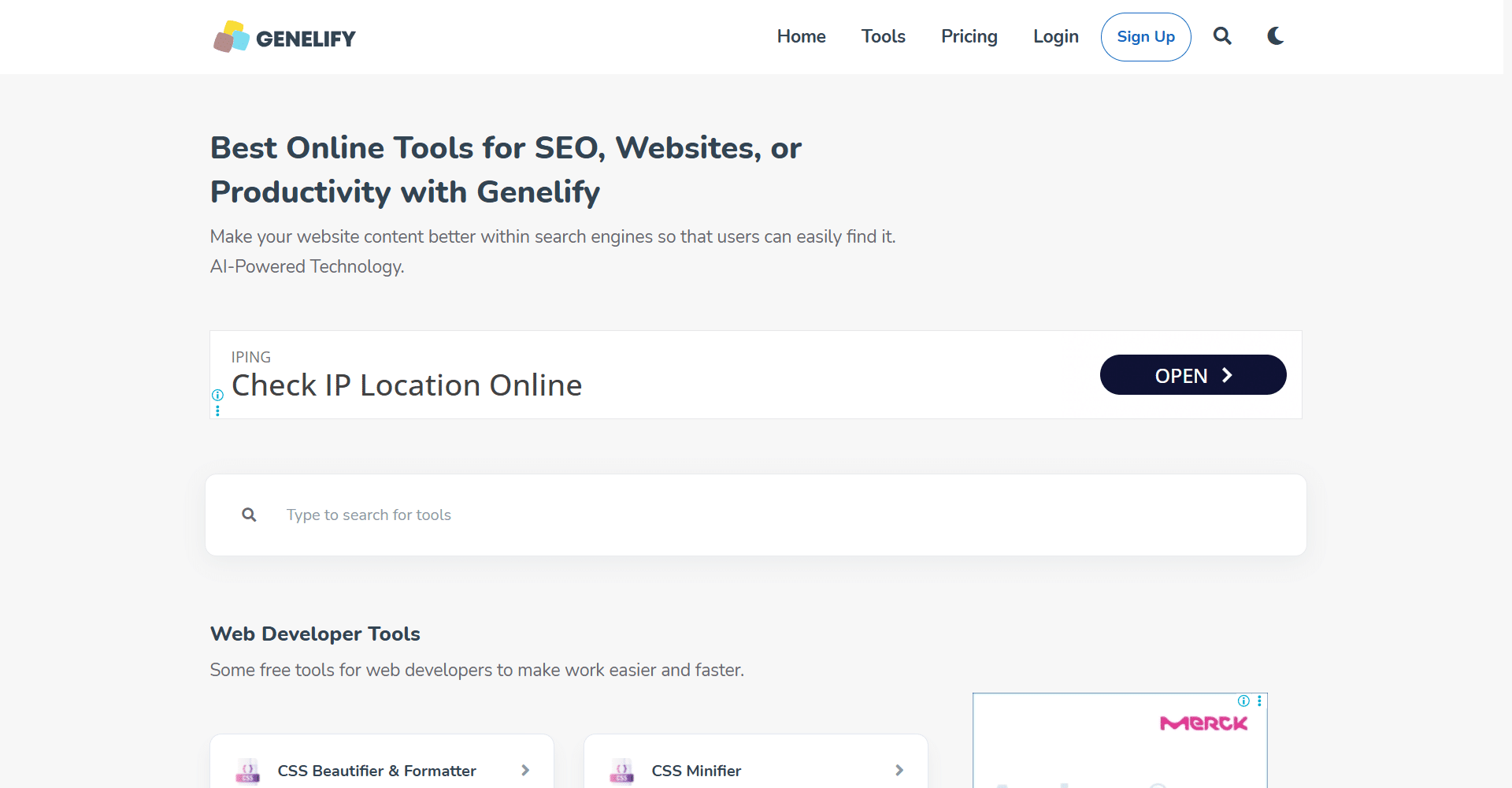 For web developers, Genelify offers CSS, HTML, JavaScript, and PHP formatters and minifiers, JSON and SQL validators, and Markdown converters to streamline coding and website editing. Its website tools include broken link checkers, mobile-friendly tests, speed and traffic analysis, meta tag generators, and hosting or theme detectors, ensuring your website runs smoothly and is optimized for performance.
