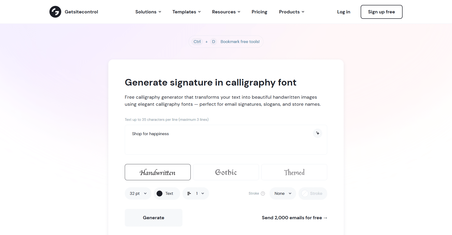 And the best part? You can start using Get Site Control for free, enjoying $2.00 per 1,000 emails and up to 10,000 monthly widget views, while creating stylish calligraphy text for your emails and campaigns.