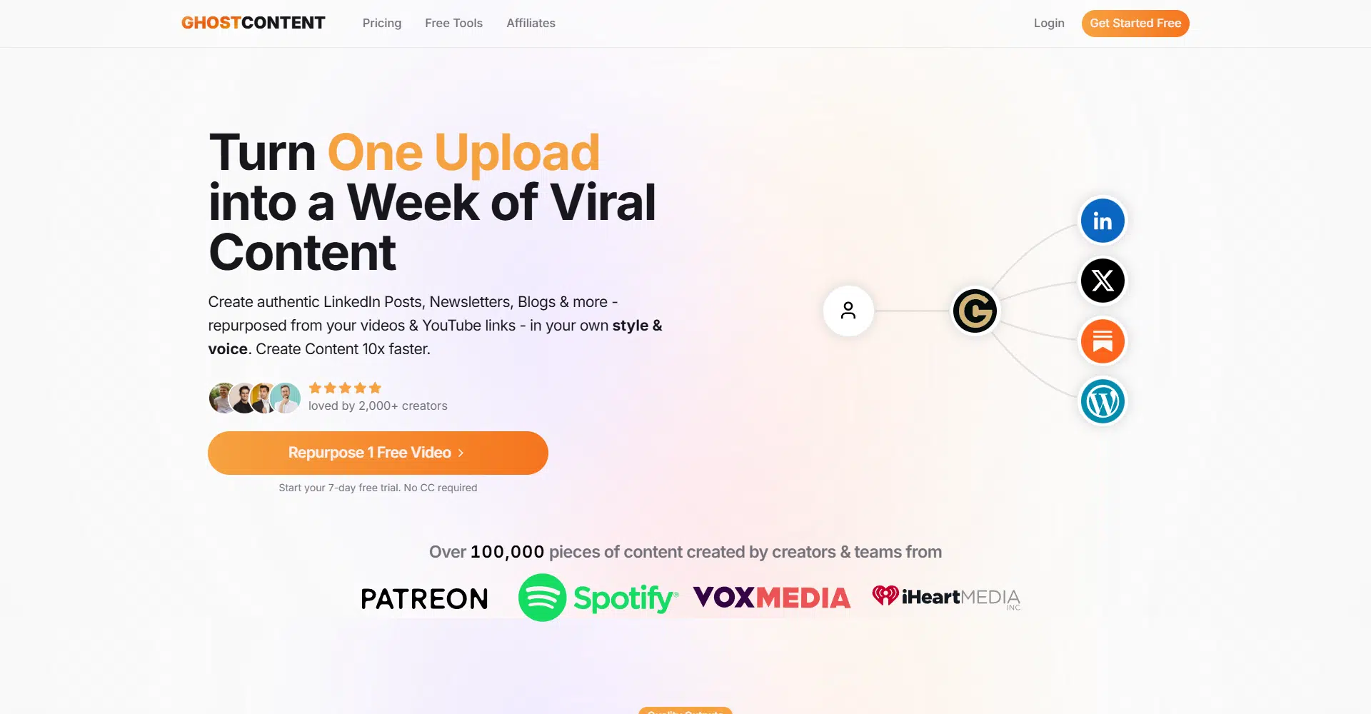 Ghost Content is an amazing tool that helps you get more done with less effort by turning one video or podcast into a whole week of viral content. It takes your videos and YouTube links and turns them into LinkedIn posts, newsletters, blog articles, and more—all written in your own style and voice. This means you can create engaging, authentic content much faster without losing your unique tone. Instead of generic, emoji-filled posts, Ghost Content produces clear and professional writing that truly connects with your audience.