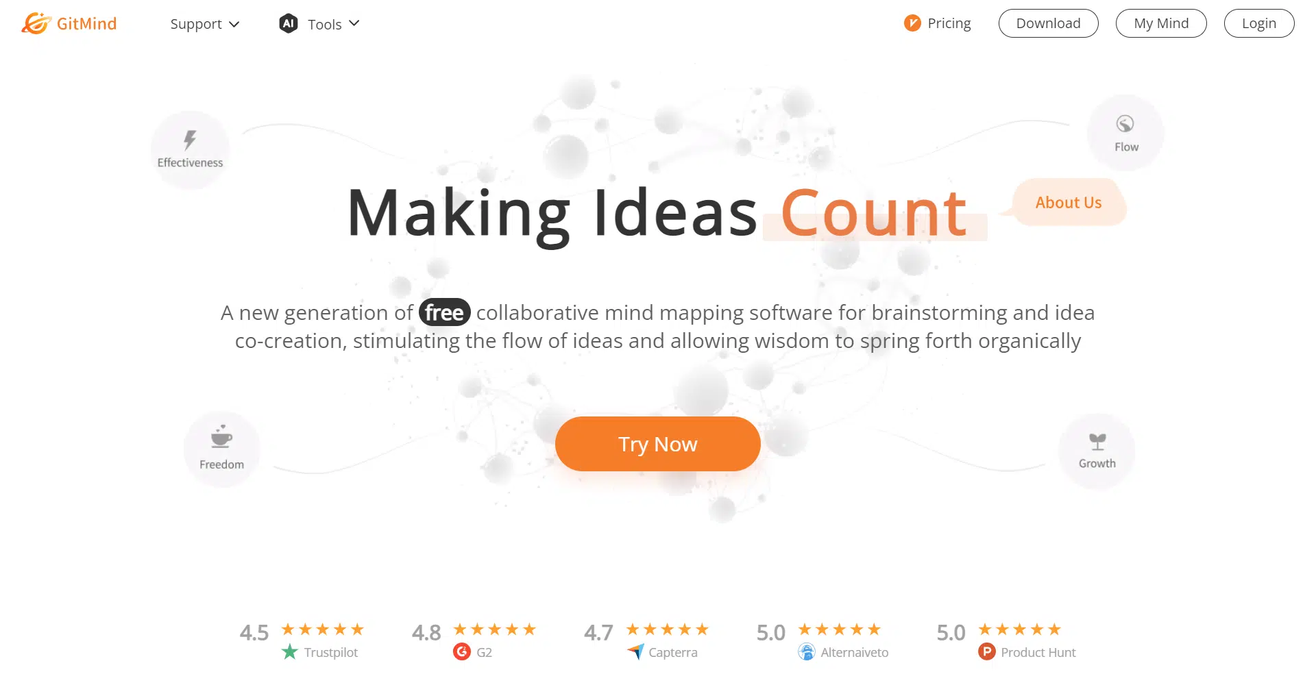 Meet GitMind, the trailblazer in collaborative mind-mapping software that transforms the way ideas flourish. With an outstanding 4.5 Trustpilot rating and glowing reviews on G2, Capterra, AlternativeTo, and Product Hunt, GitMind is revolutionizing brainstorming and idea co-creation.