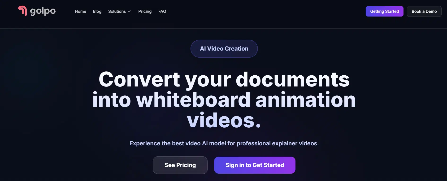 Golpo is an AI-powered video creation platform built to transform documents into clear, engaging whiteboard animation and explainer videos. Designed for simplicity and speed, Golpo allows anyone to create professional-quality videos without technical skills or prior video editing experience. With just one prompt, written content is converted into structured, visually appealing videos that are easy to understand and ready to share.